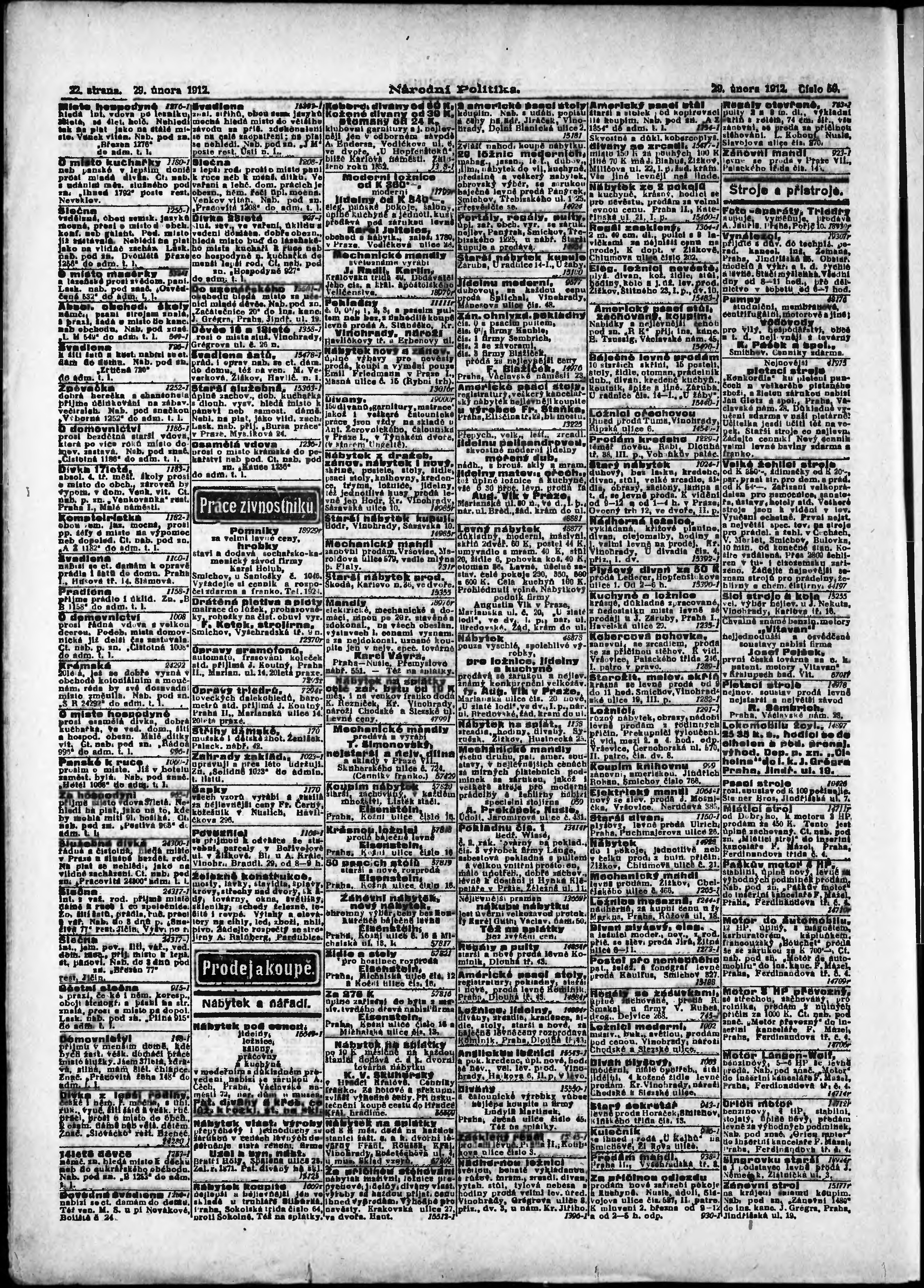 * Datum vydání výtisku: 29.2.1912 Číslo výtisku: 59 Poznámky k výtisku: ranní vydání; s. 15 - 16 není k dispozici;