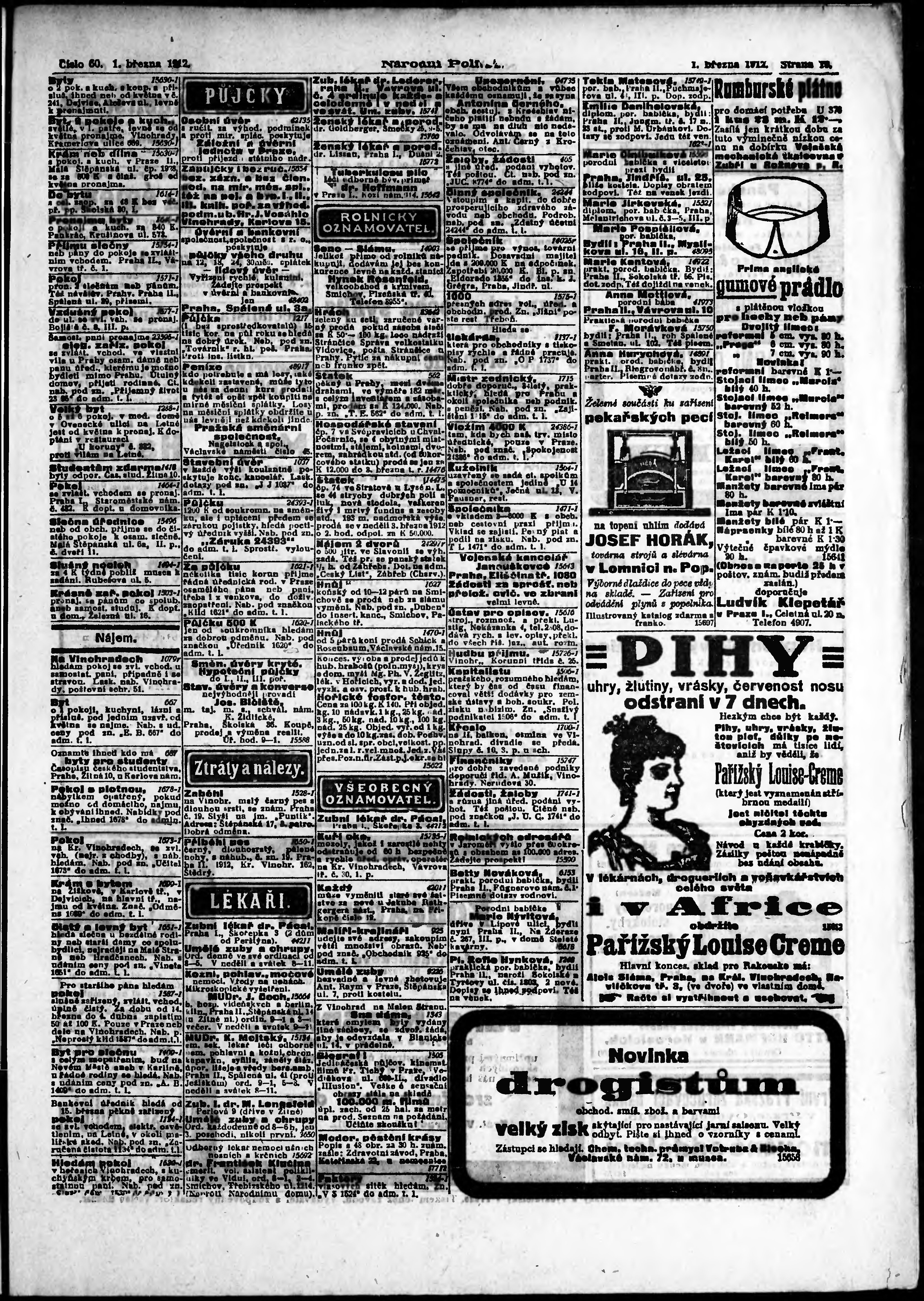 * Datum vydání výtisku: 1.3.1912 Číslo výtisku: 60 Poznámky k výtisku: ranní vydání;