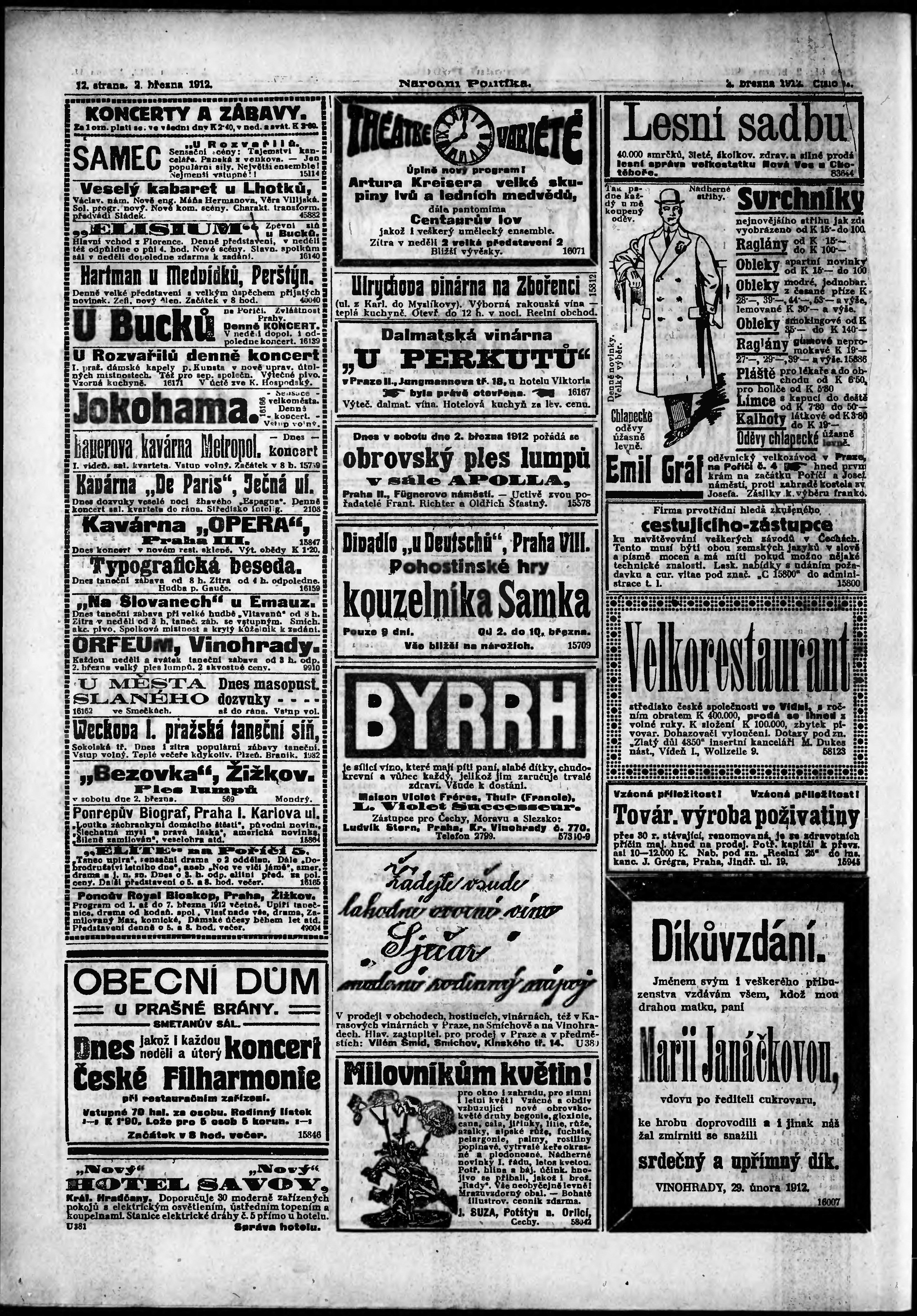 * Datum vydání výtisku: 2.3.1912 Číslo výtisku: 61 Poznámky k výtisku: ranní vydání; s. 15 - 16, 24 - 25 není k dispozici;