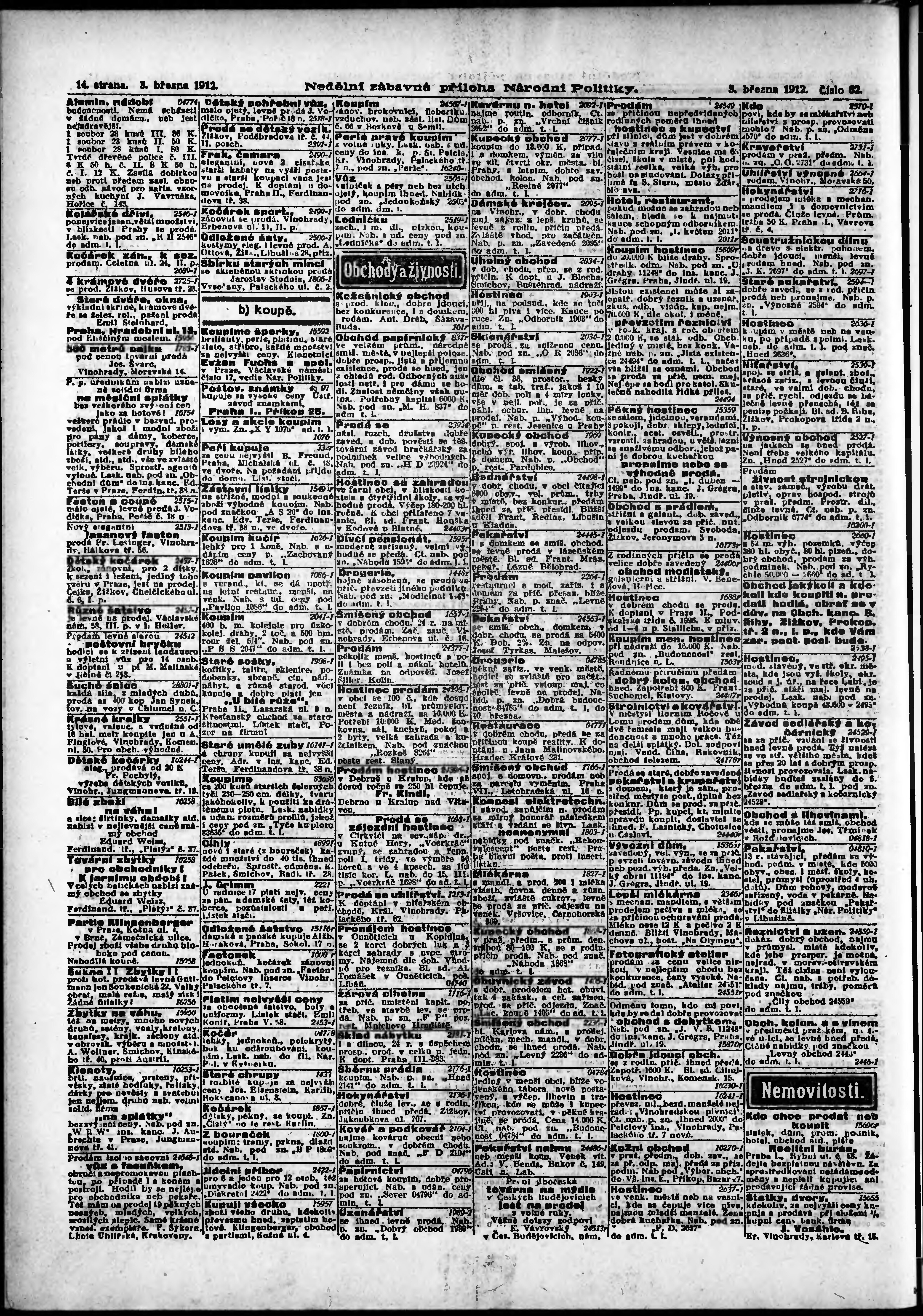 * Datum vydání výtisku: 3.3.1912 Číslo výtisku: 62 Typ výtisku: příloha