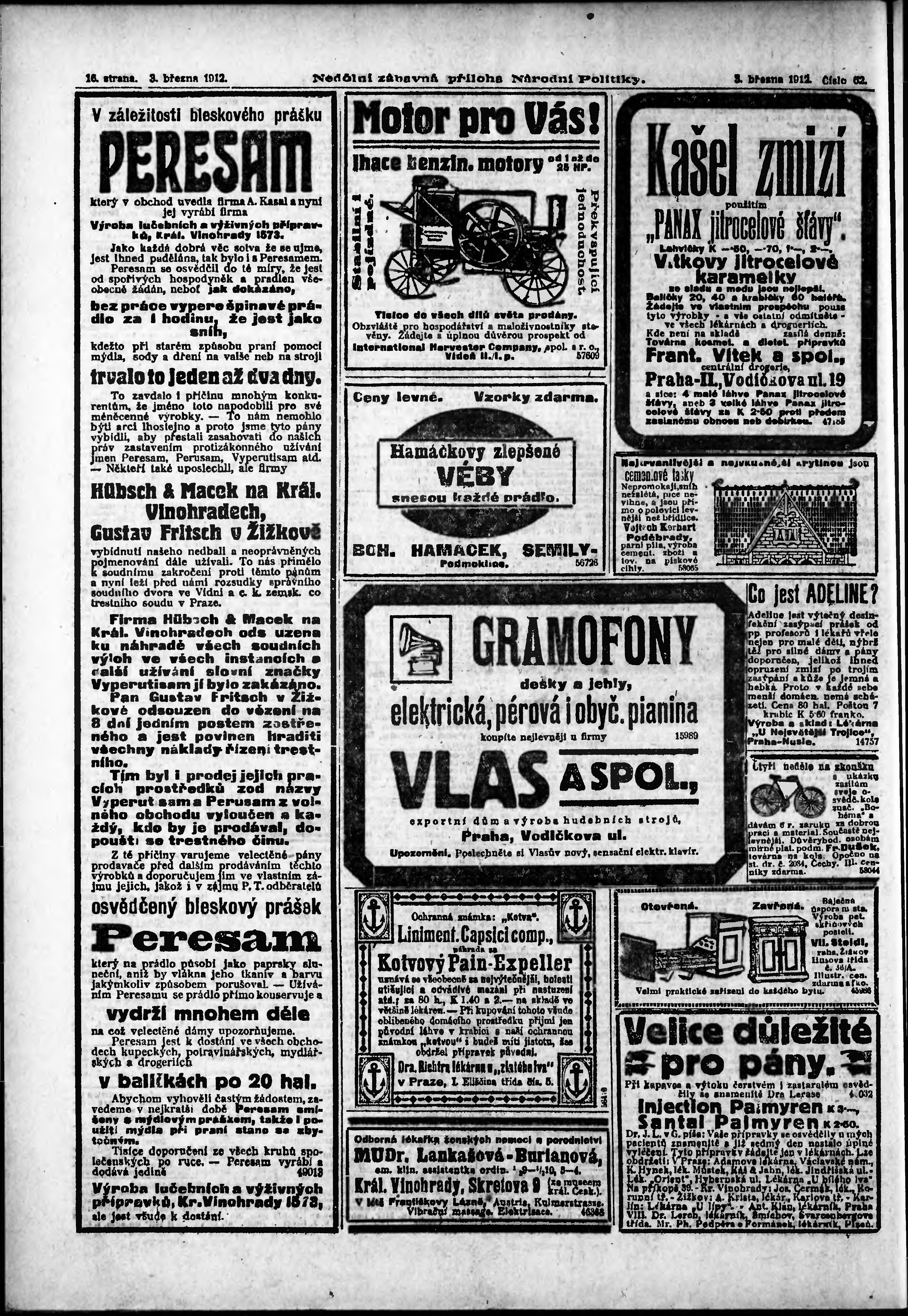 * Datum vydání výtisku: 3.3.1912 Číslo výtisku: 62 Typ výtisku: příloha