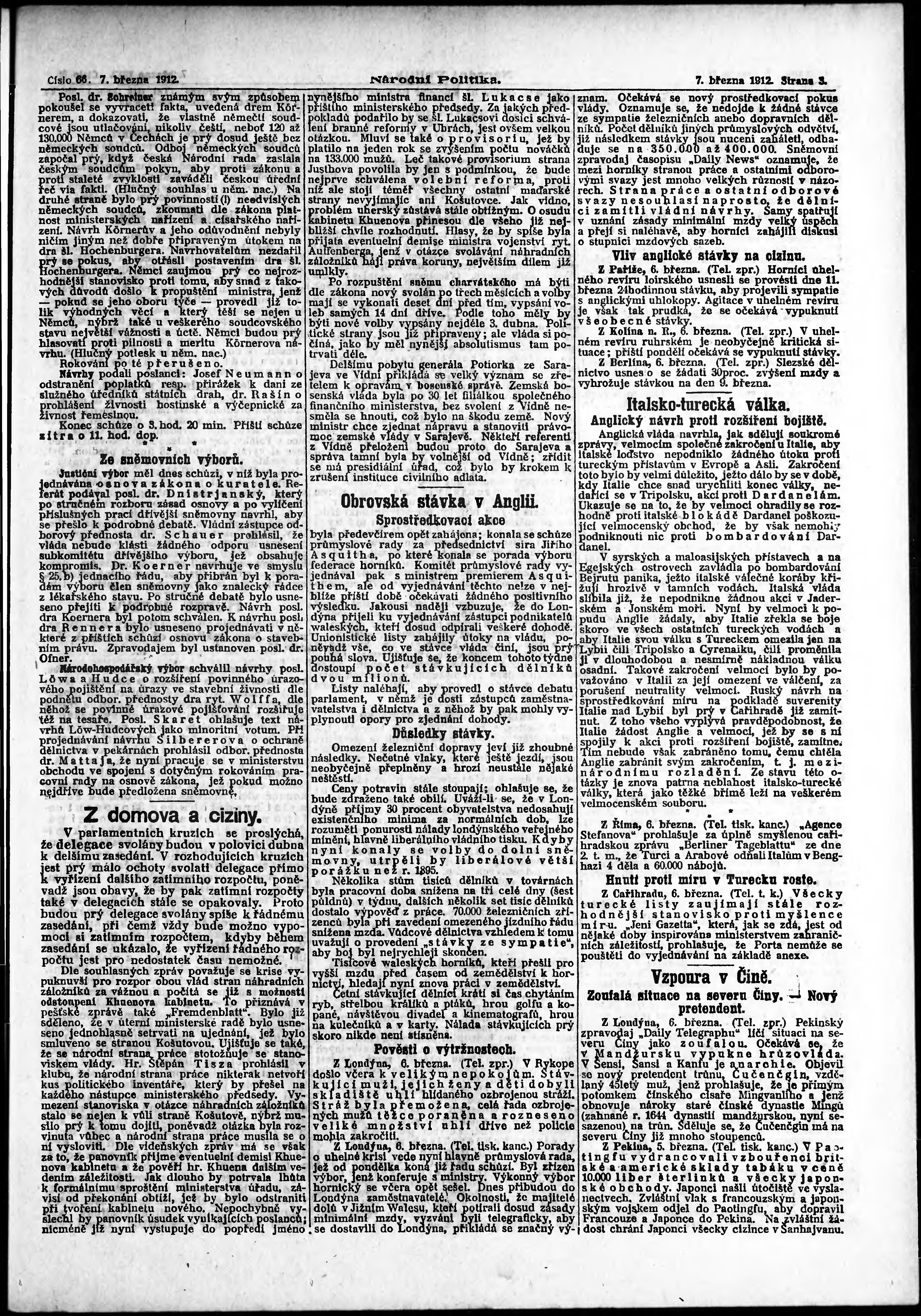 * Datum vydání výtisku: 7.3.1912 Číslo výtisku: 66 Poznámky k výtisku: ranní vydání; s. 15 - 16 není k dispozici;