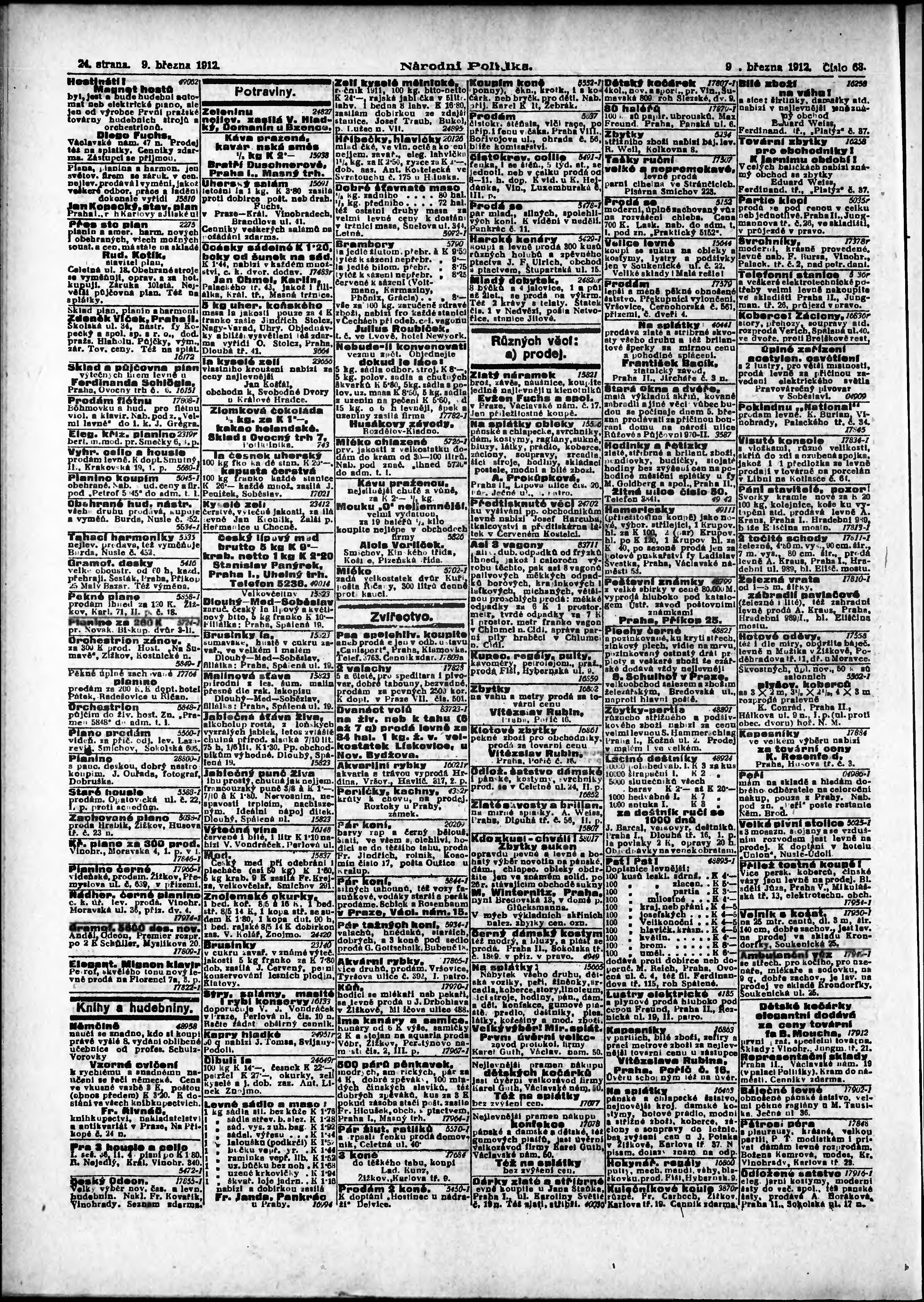 * Datum vydání výtisku: 9.3.1912 Číslo výtisku: 68 Poznámky k výtisku: ranní vydání;