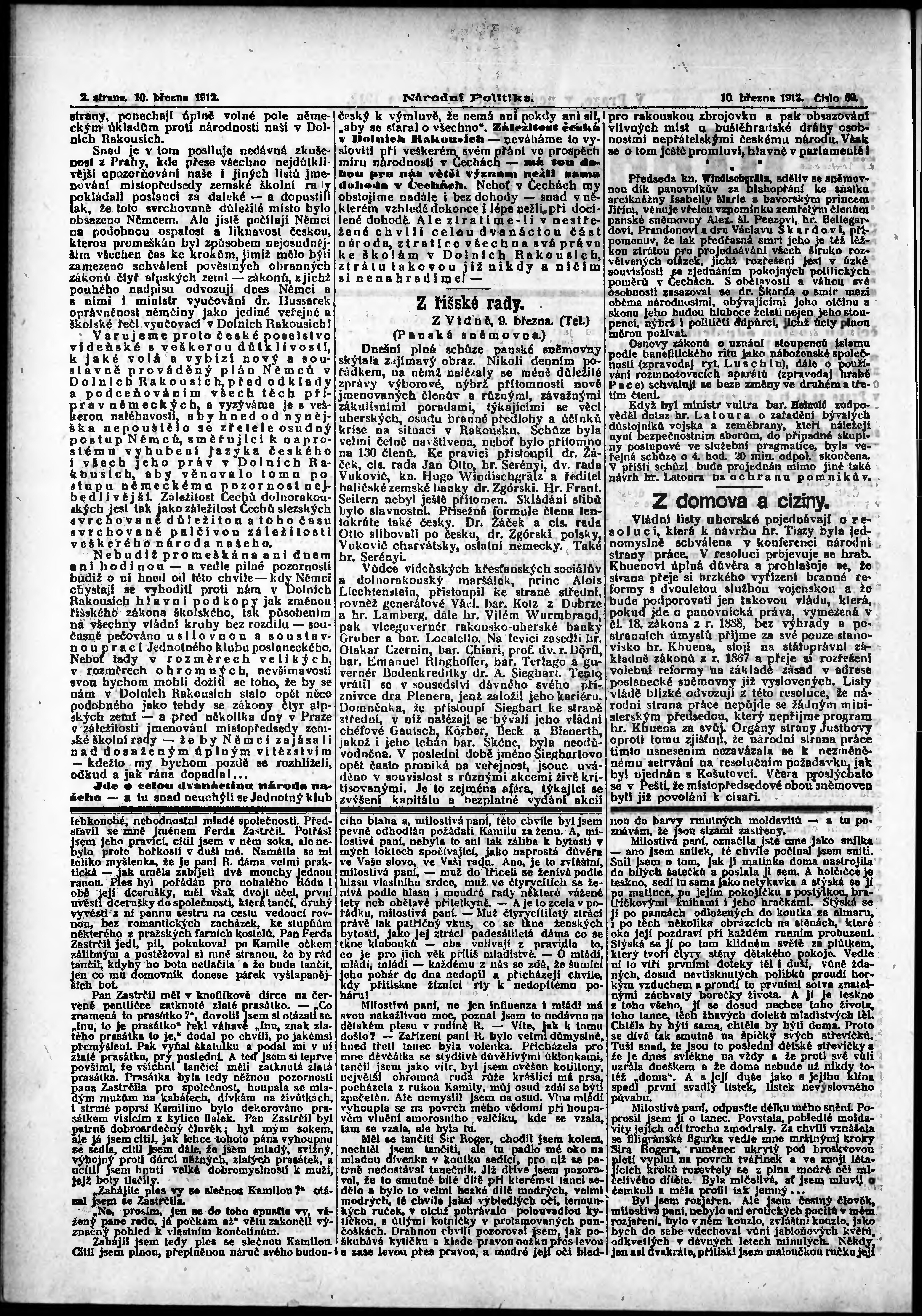 * Datum vydání výtisku: 10.3.1912 Číslo výtisku: 69 Poznámky k výtisku: ranní vydání;