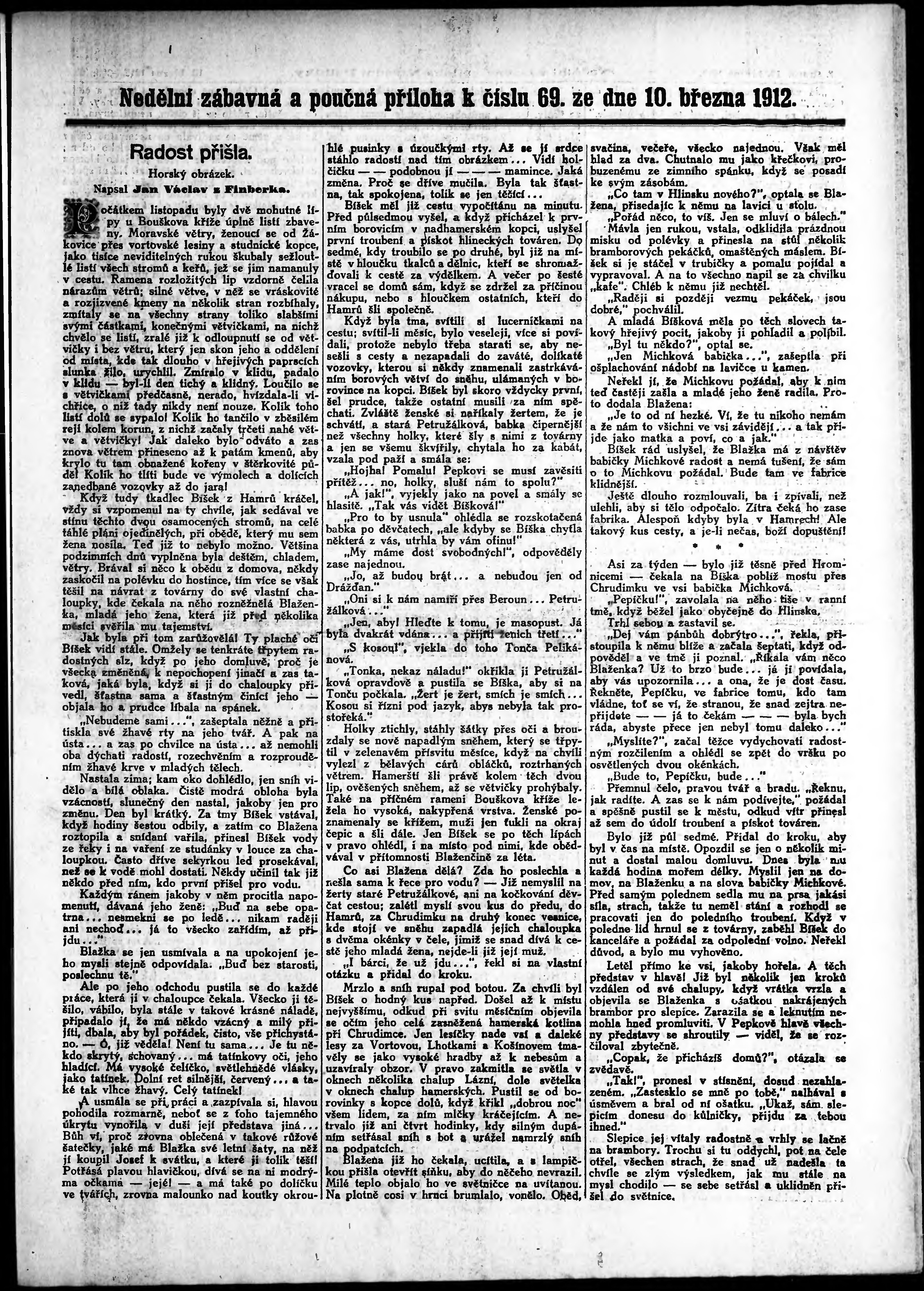 * Datum vydání výtisku: 10.3.1912 Číslo výtisku: 69 Typ výtisku: příloha