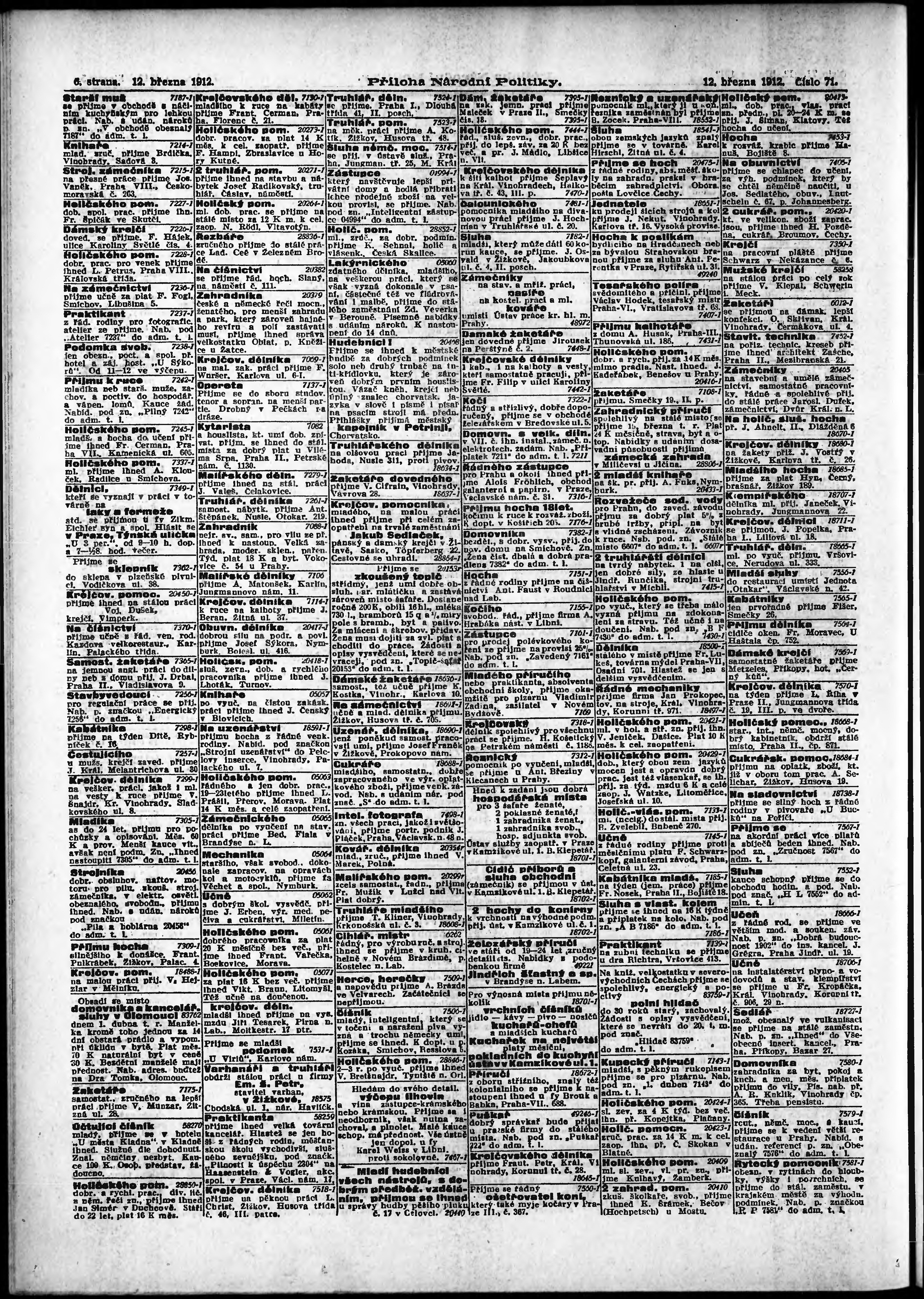 * Datum vydání výtisku: 12.3.1912 Číslo výtisku: 71 Typ výtisku: příloha