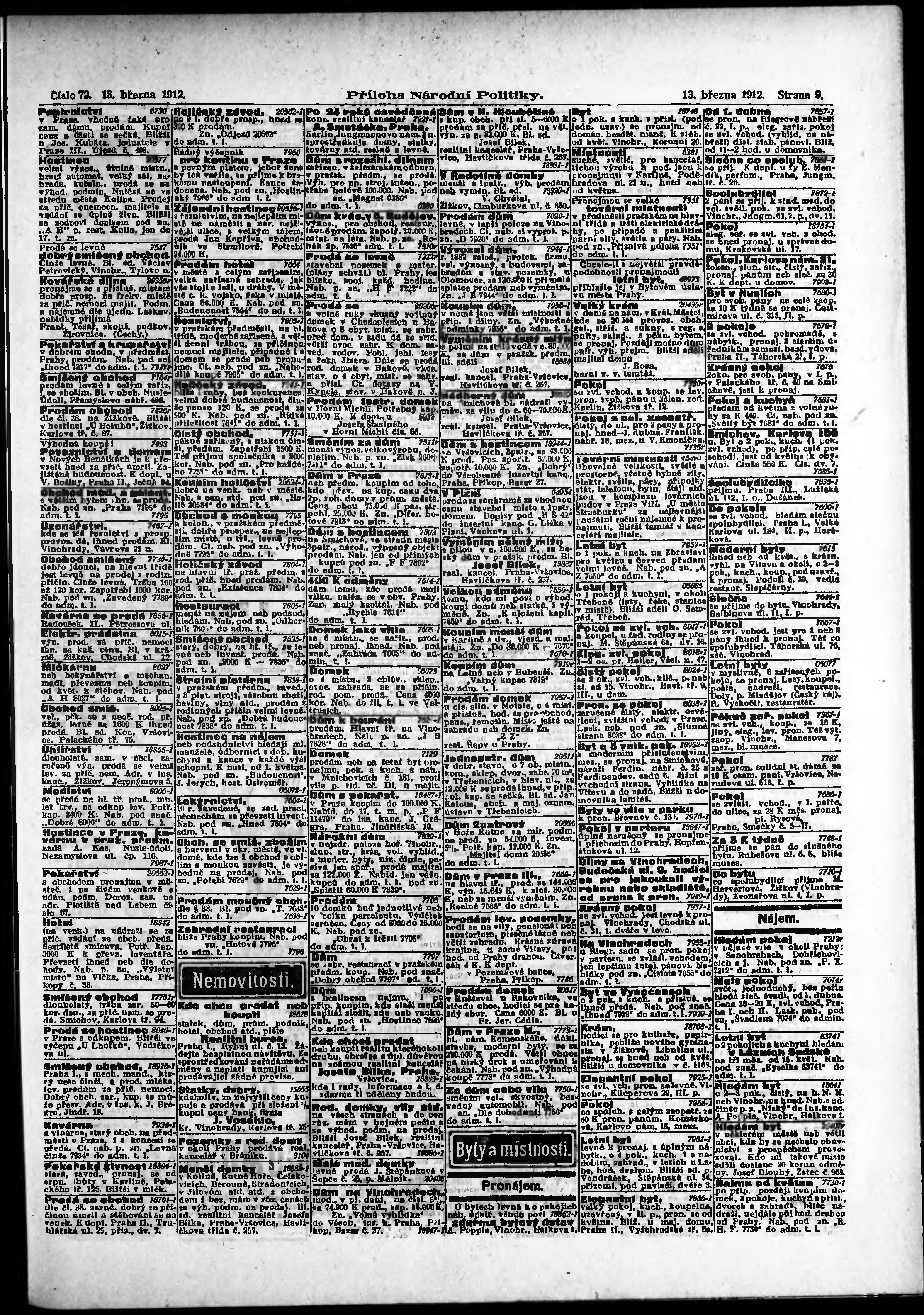 * Datum vydání výtisku: 13.3.1912 Číslo výtisku: 72 Typ výtisku: příloha