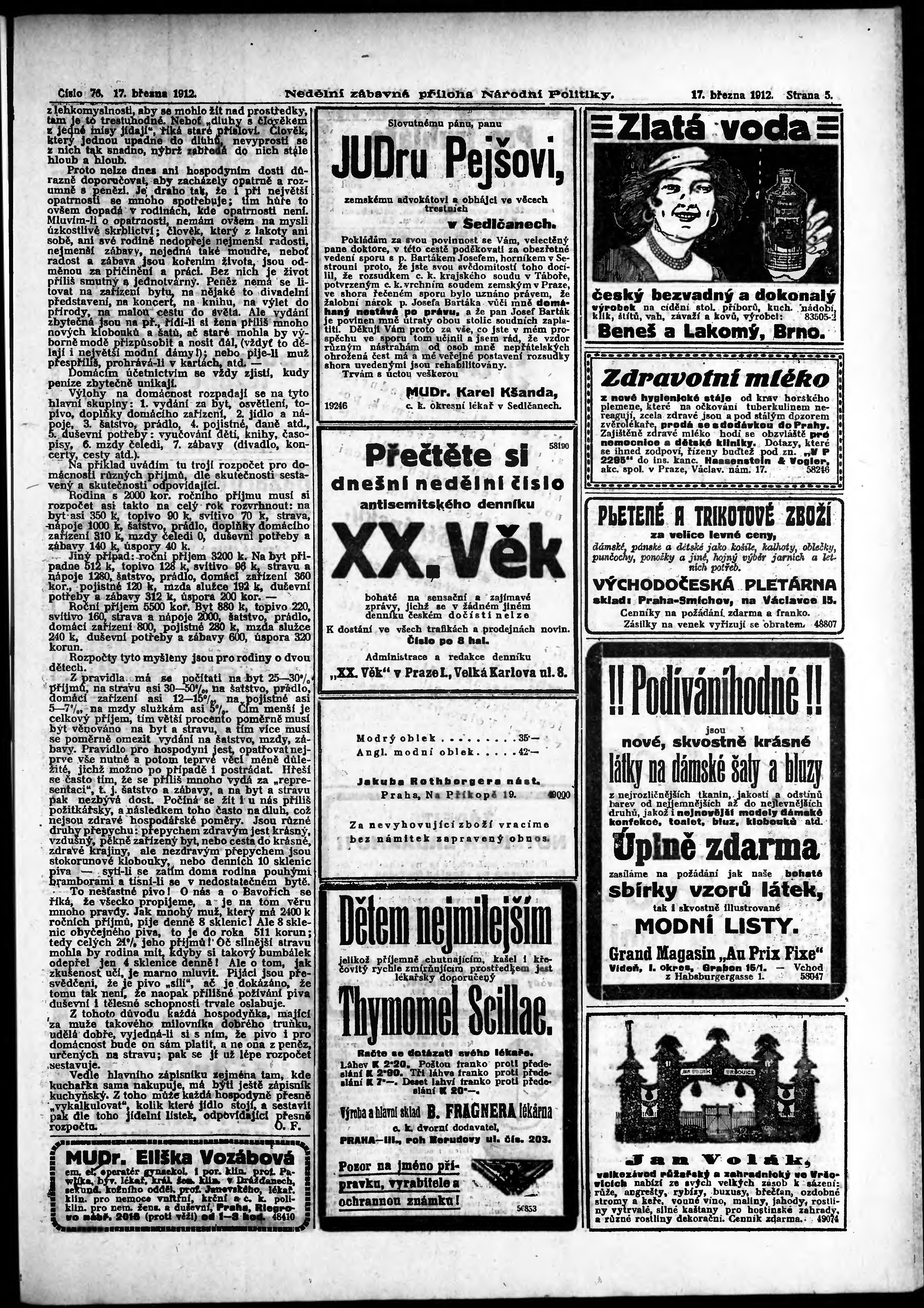 * Datum vydání výtisku: 17.3.1912 Číslo výtisku: 76 Typ výtisku: příloha