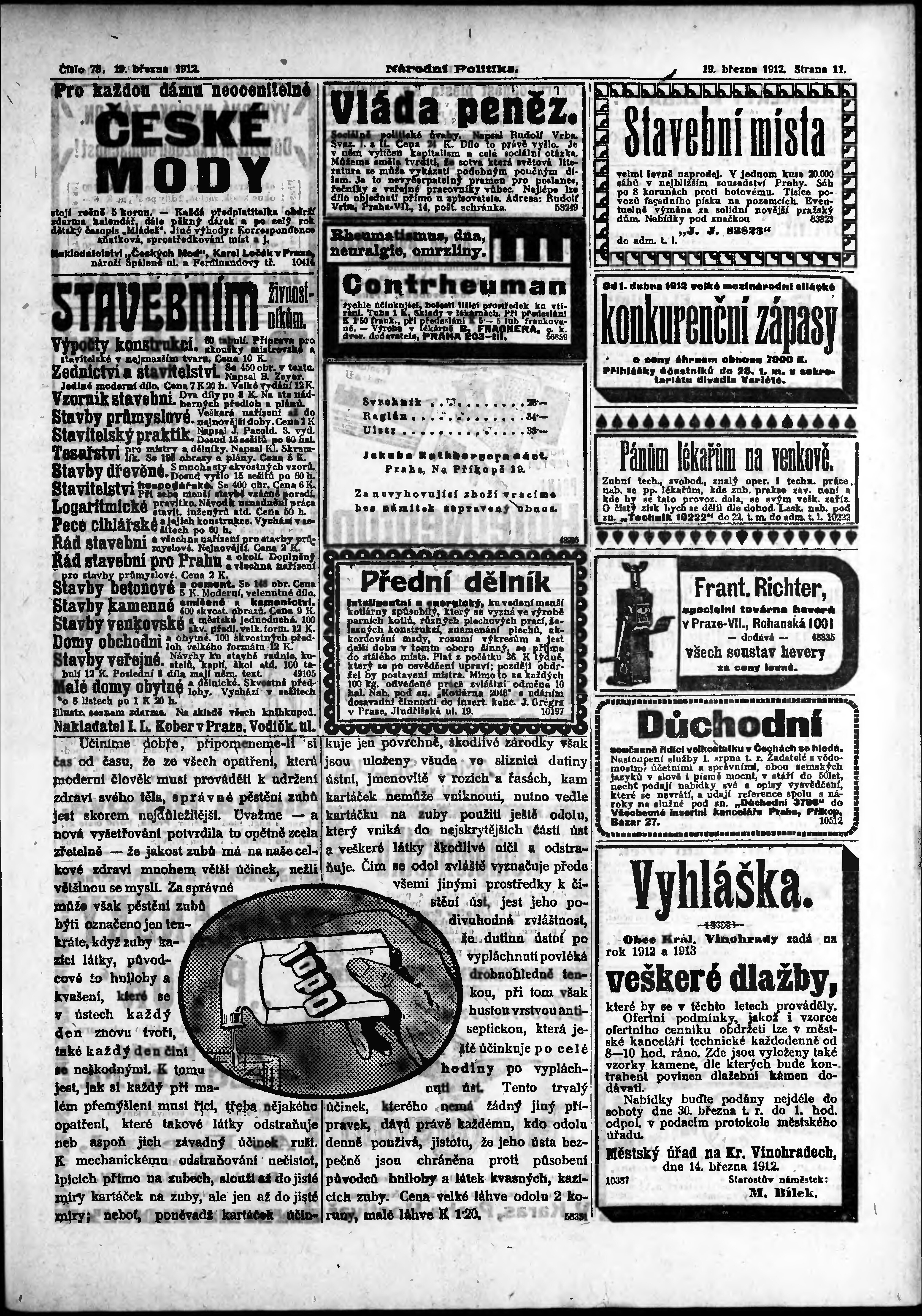 * Datum vydání výtisku: 19.3.1912 Číslo výtisku: 78 Poznámky k výtisku: ranní vydání;