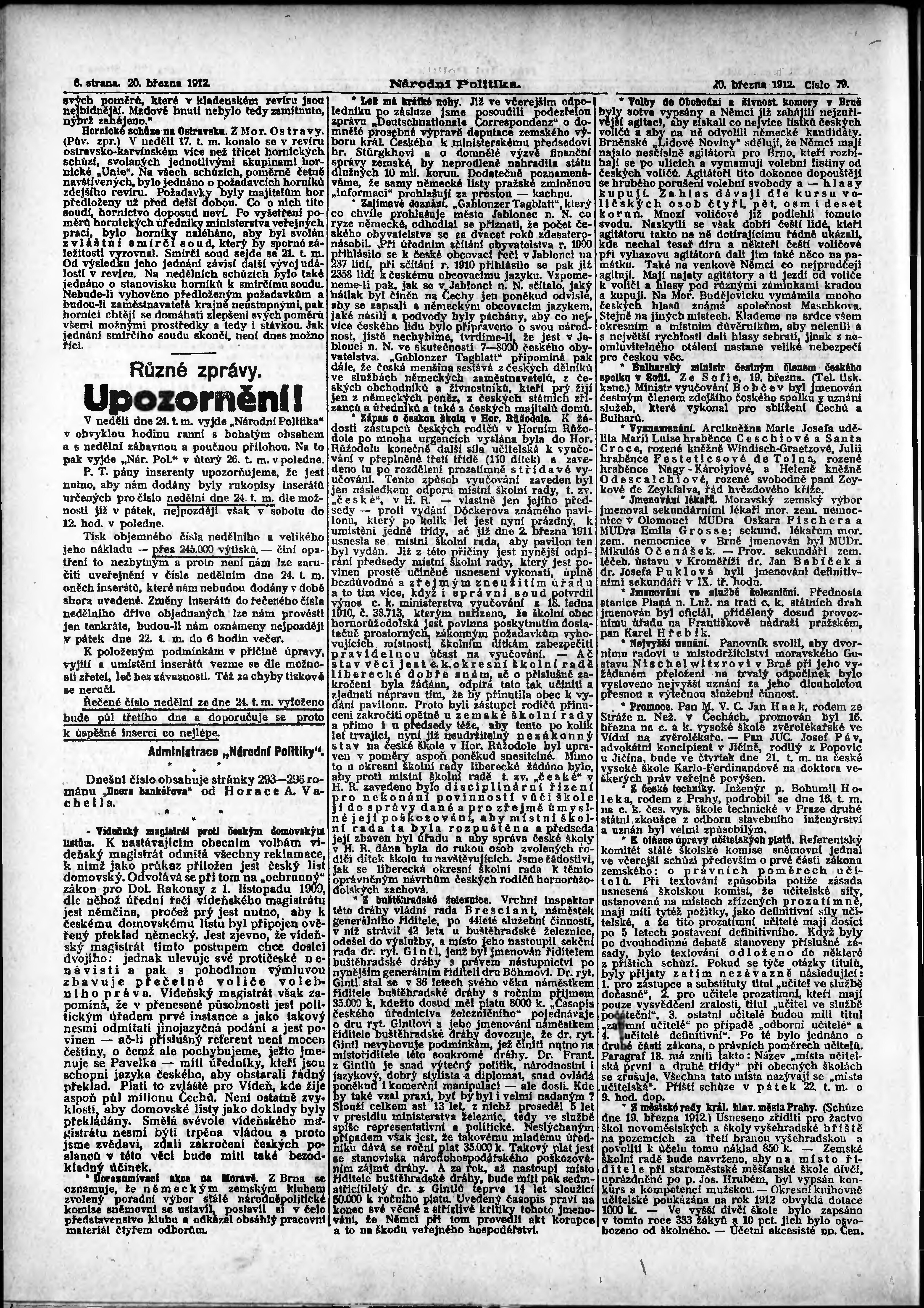 * Datum vydání výtisku: 20.3.1912 Číslo výtisku: 79 Poznámky k výtisku: ranní vydání;