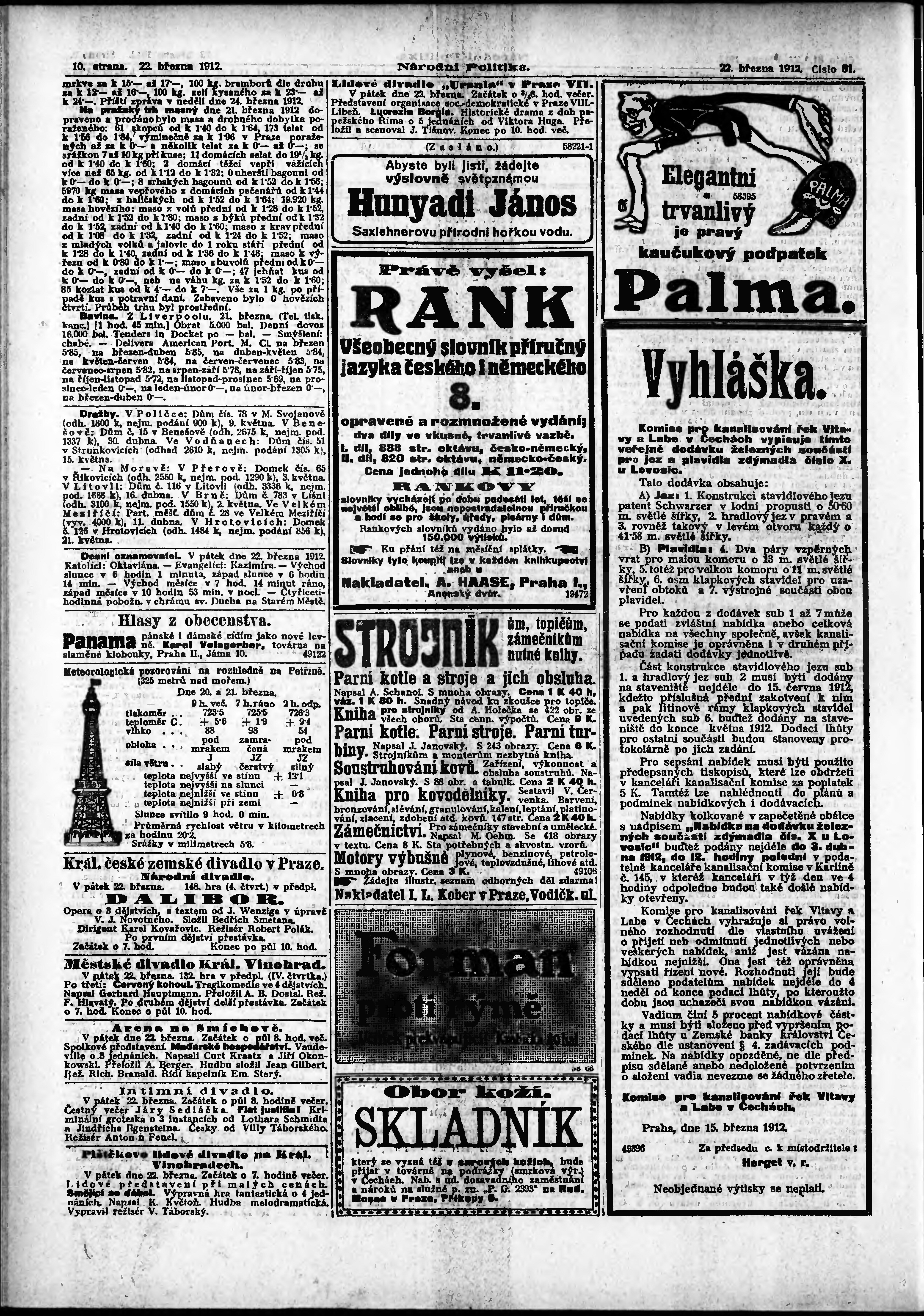 * Datum vydání výtisku: 22.3.1912 Číslo výtisku: 81 Poznámky k výtisku: ranní vydání;