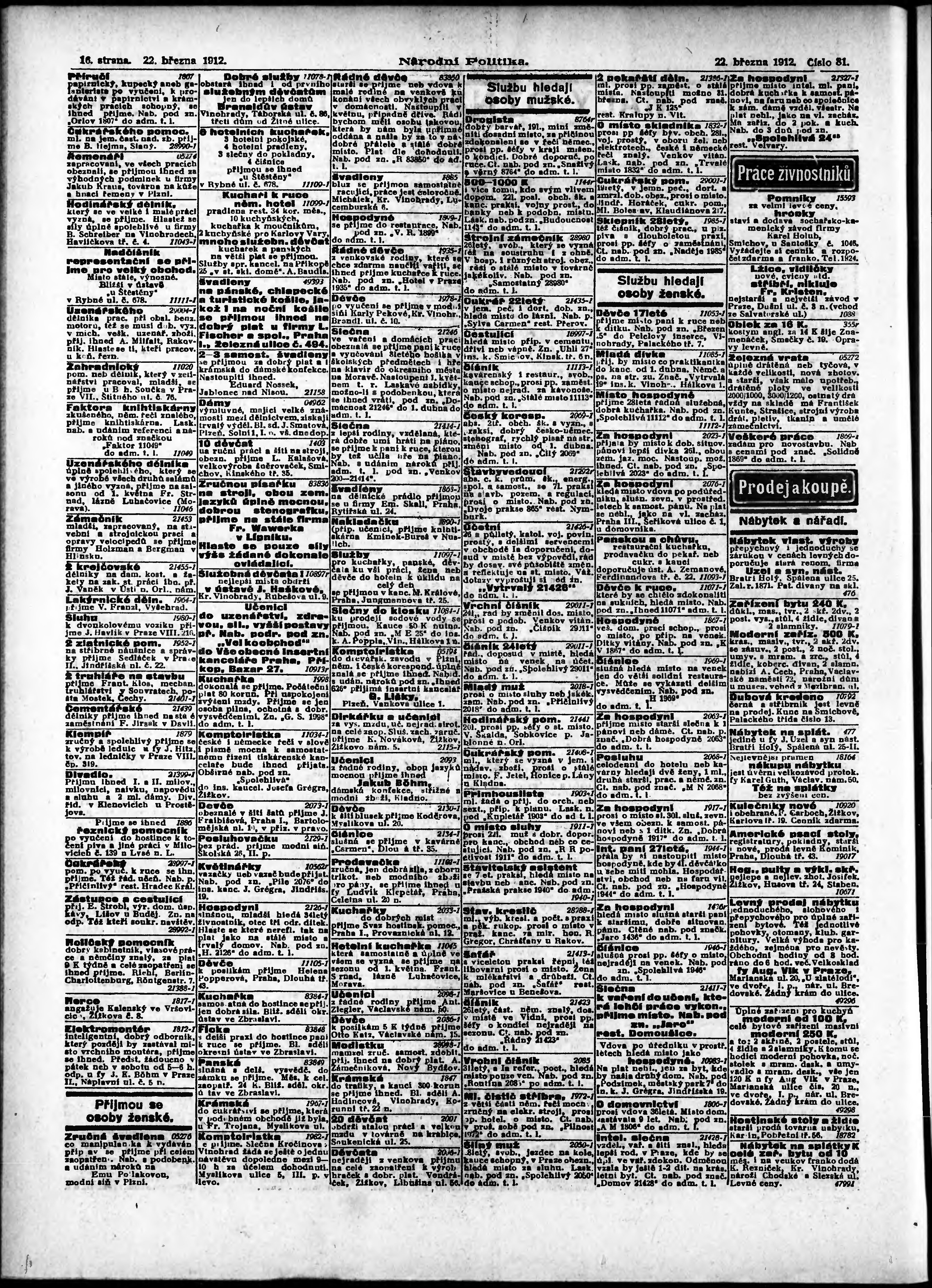 * Datum vydání výtisku: 22.3.1912 Číslo výtisku: 81 Poznámky k výtisku: ranní vydání;