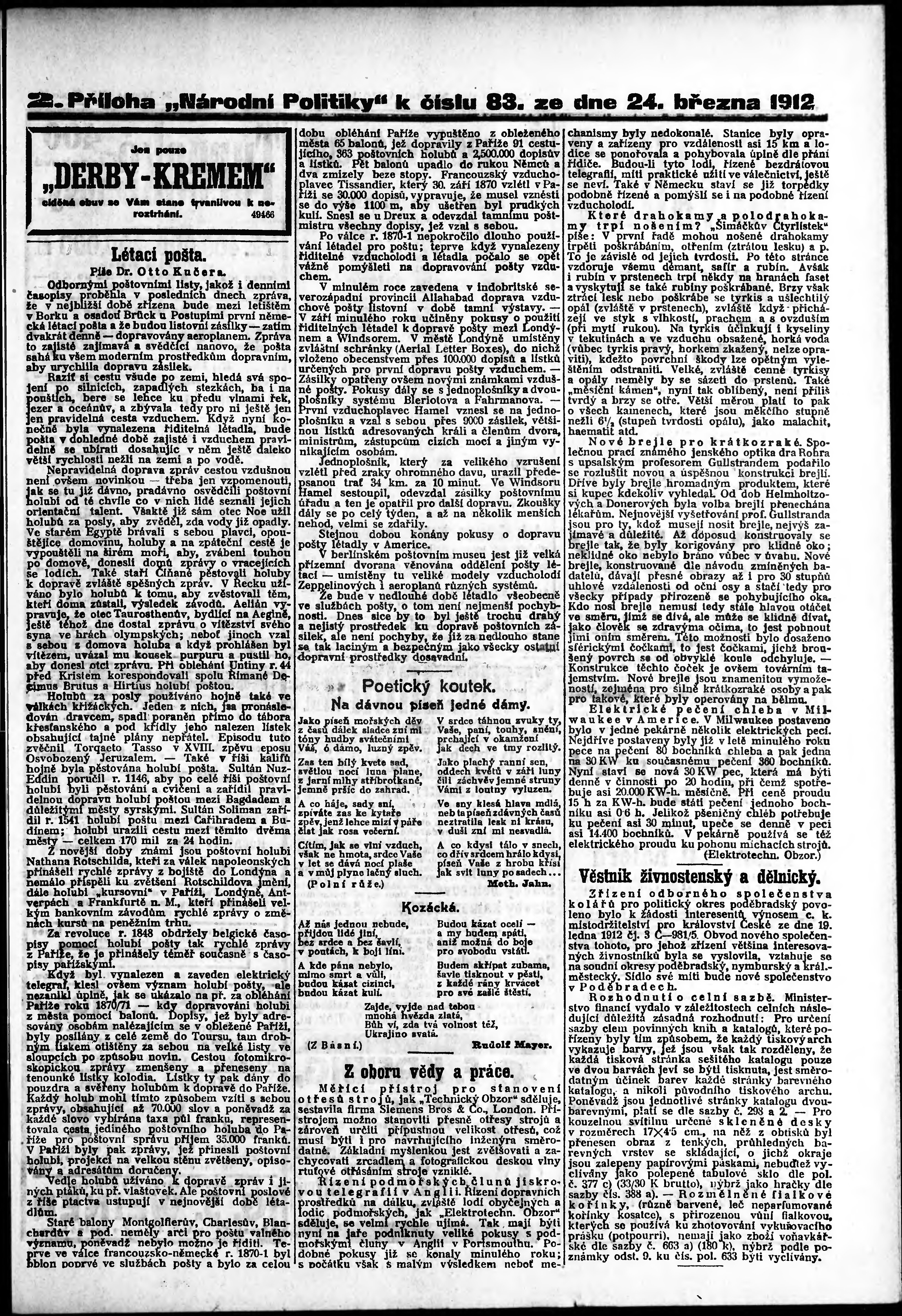 * Datum vydání výtisku: 24.3.1912 Číslo výtisku: 83 Typ výtisku: příloha Poznámky k výtisku: 2. příloha;