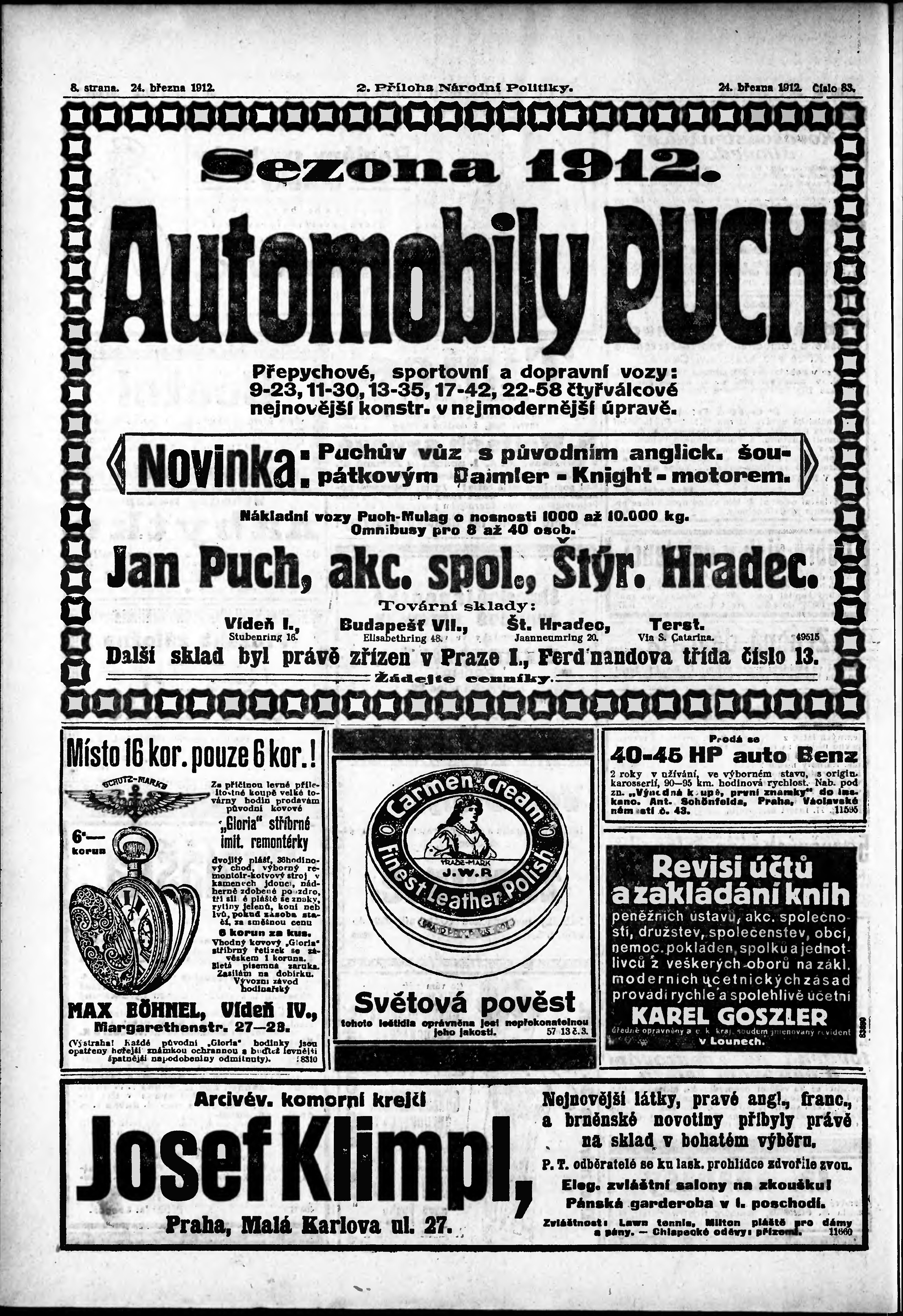 * Datum vydání výtisku: 24.3.1912 Číslo výtisku: 83 Typ výtisku: příloha Poznámky k výtisku: 2. příloha;
