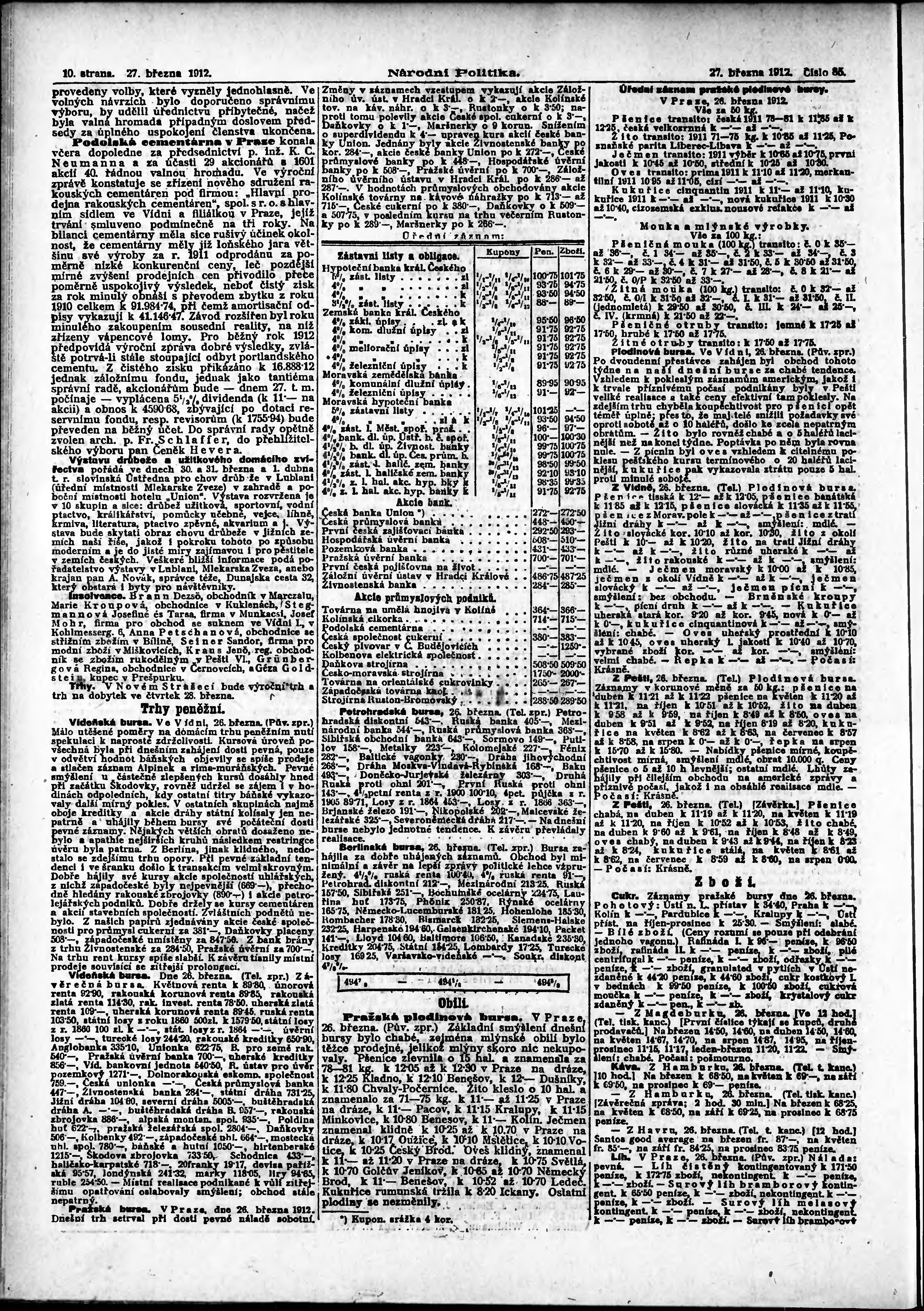* Datum vydání výtisku: 27.3.1912 Číslo výtisku: 85 Poznámky k výtisku: ranní vydání; s. 15 - 16 není k dispozici;
