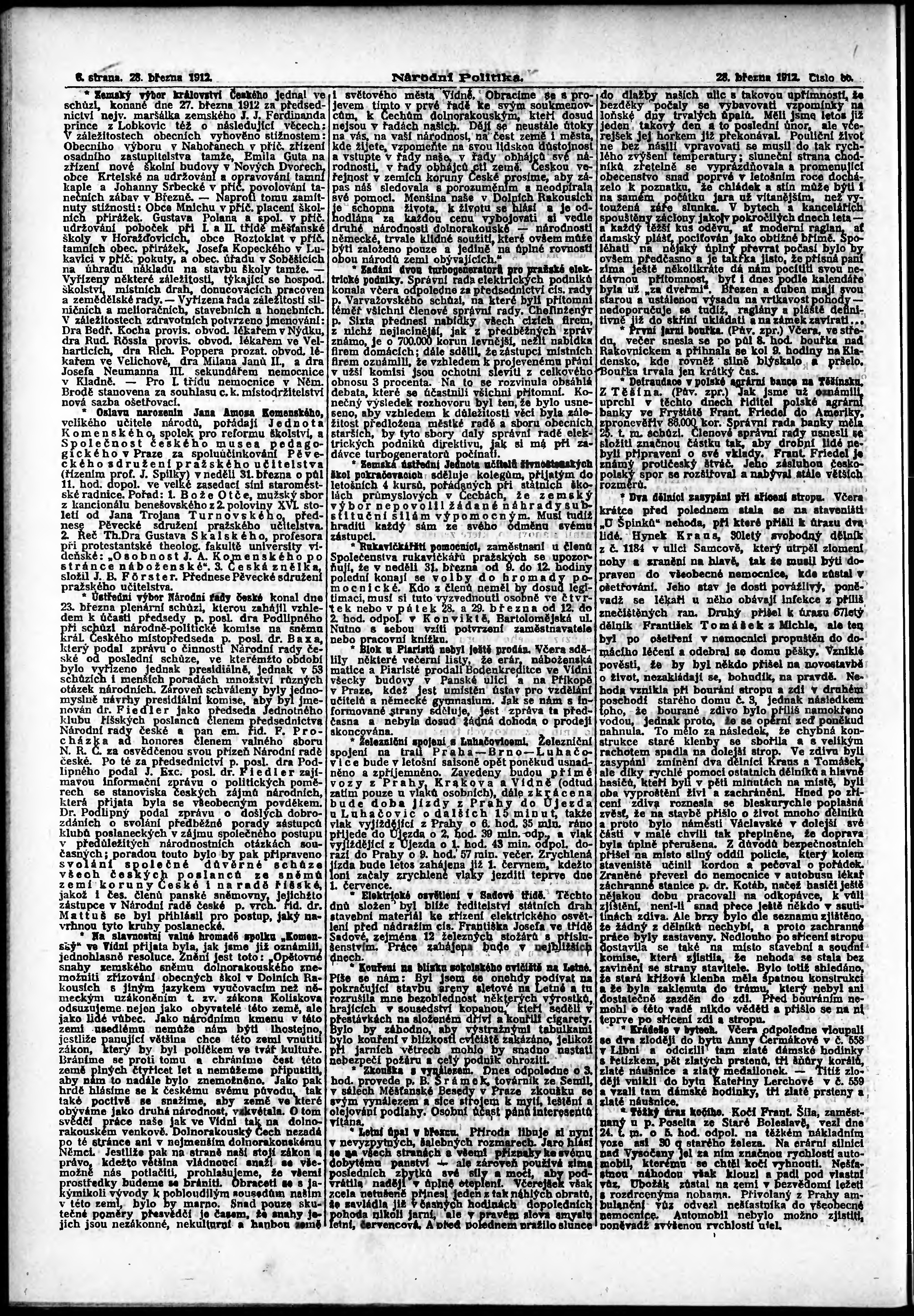 * Datum vydání výtisku: 28.3.1912 Číslo výtisku: 86 Poznámky k výtisku: ranní vydání; s. 15 - 16 není k dispozici;