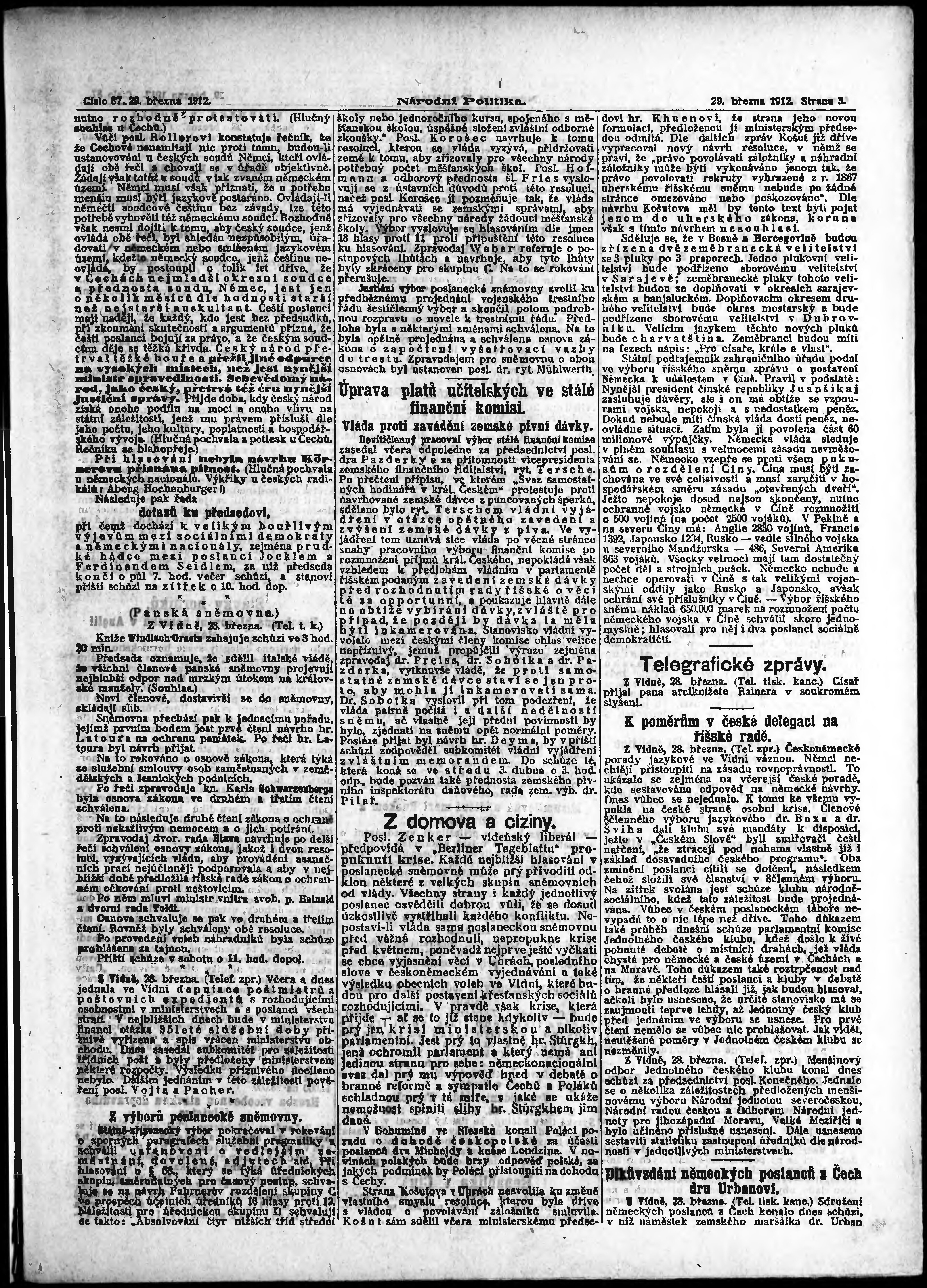 * Datum vydání výtisku: 29.3.1912 Číslo výtisku: 87 Poznámky k výtisku: ranní vydání;