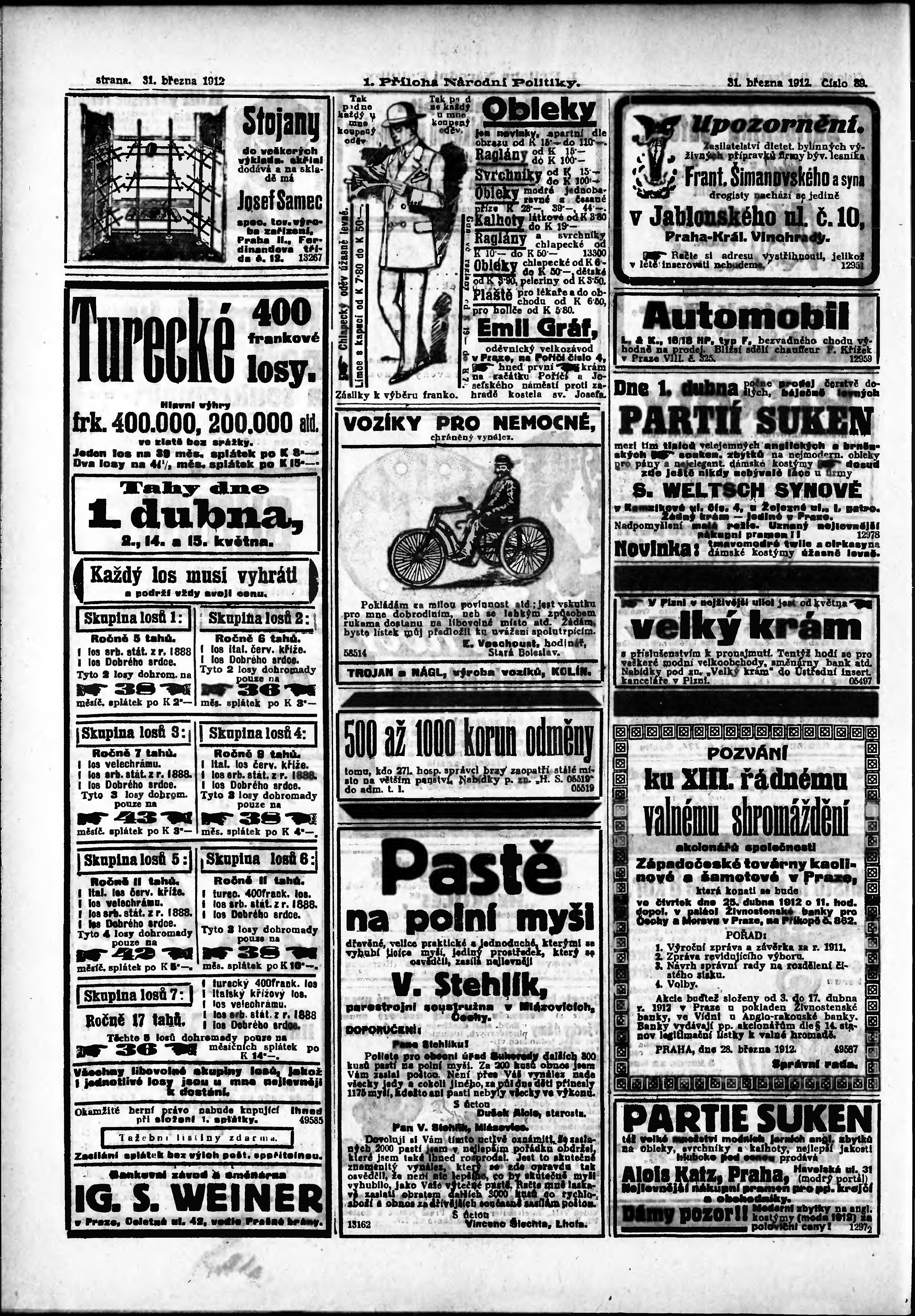 * Datum vydání výtisku: 31.3.1912 Číslo výtisku: 89 Typ výtisku: příloha Poznámky k výtisku: 1. příloha;