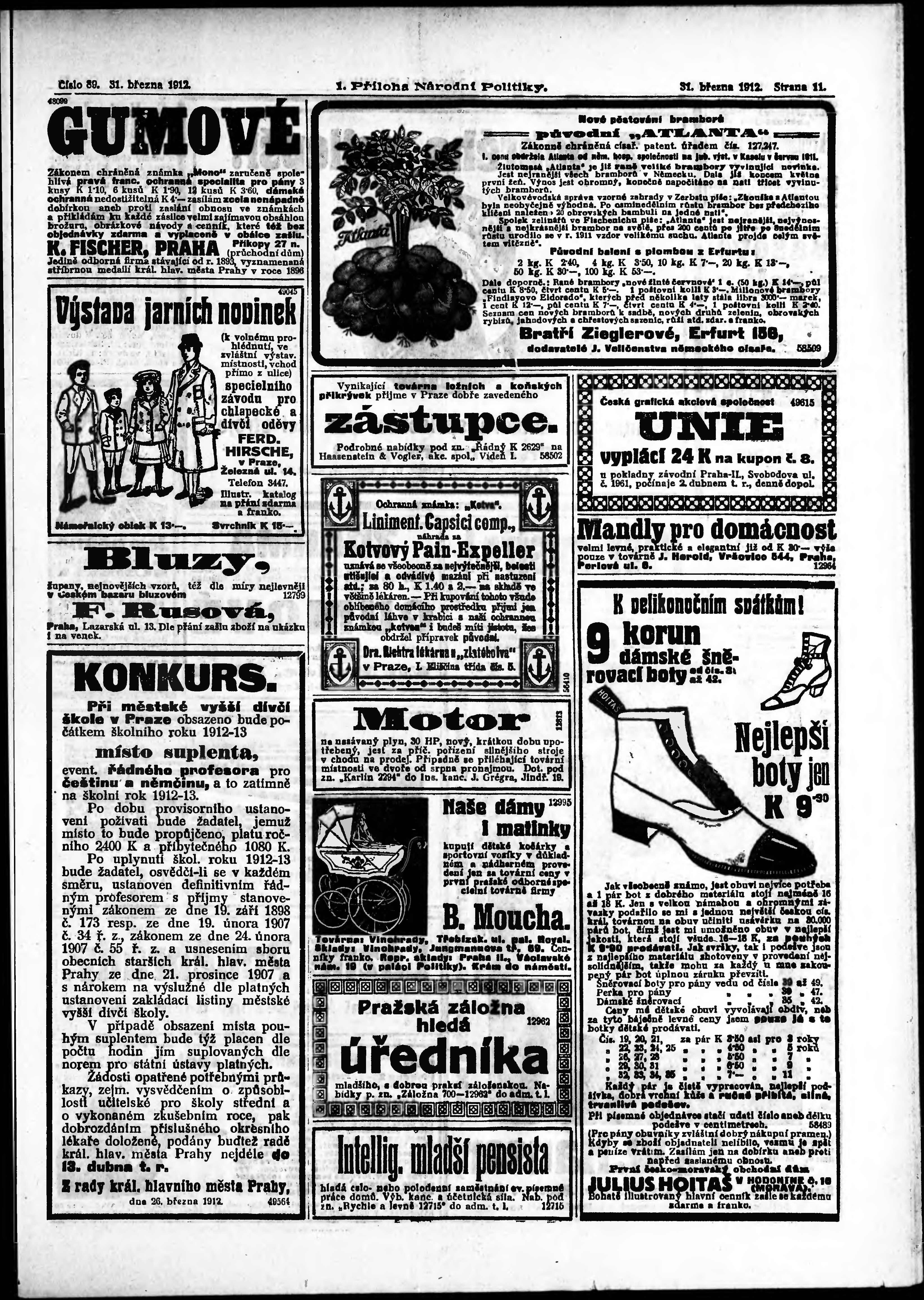 * Datum vydání výtisku: 31.3.1912 Číslo výtisku: 89 Typ výtisku: příloha Poznámky k výtisku: 1. příloha;