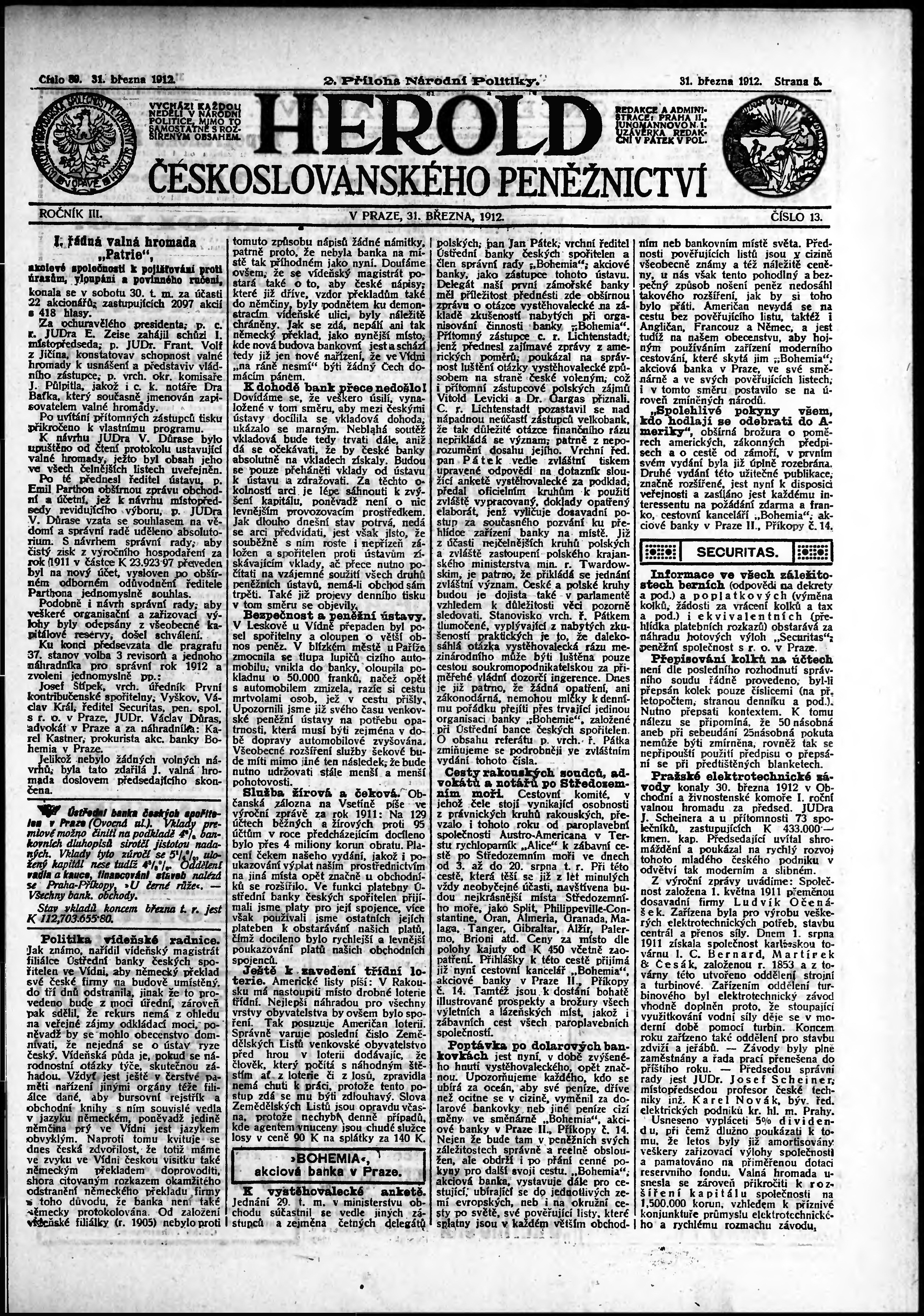 Poznámky k výtisku: 2. příloha; obsahuje č. 13 Herold českoslovanského peněžnictví;