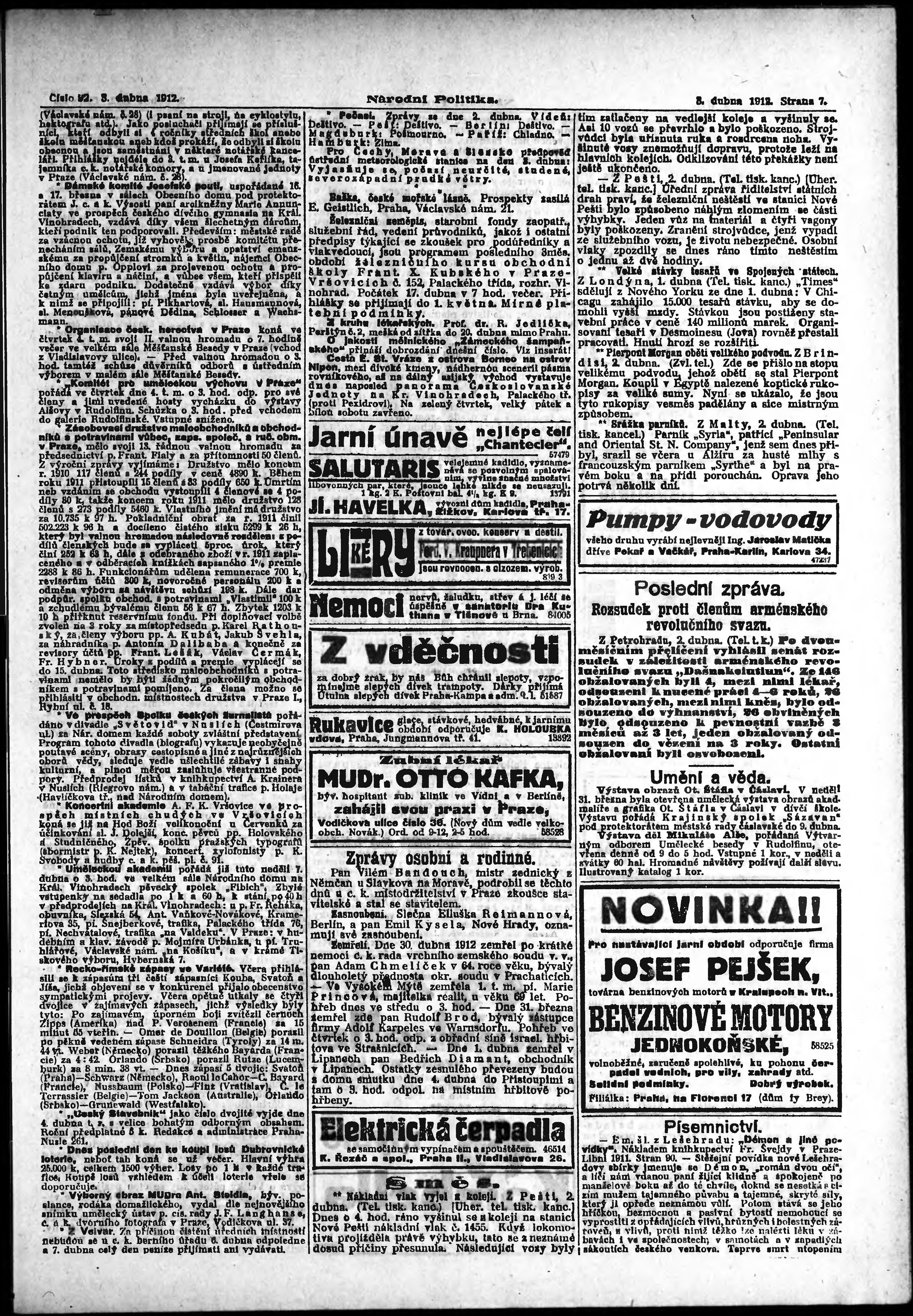 * Datum vydání výtisku: 3.4.1912 Číslo výtisku: 92 Poznámky k výtisku: ranní vydání;
