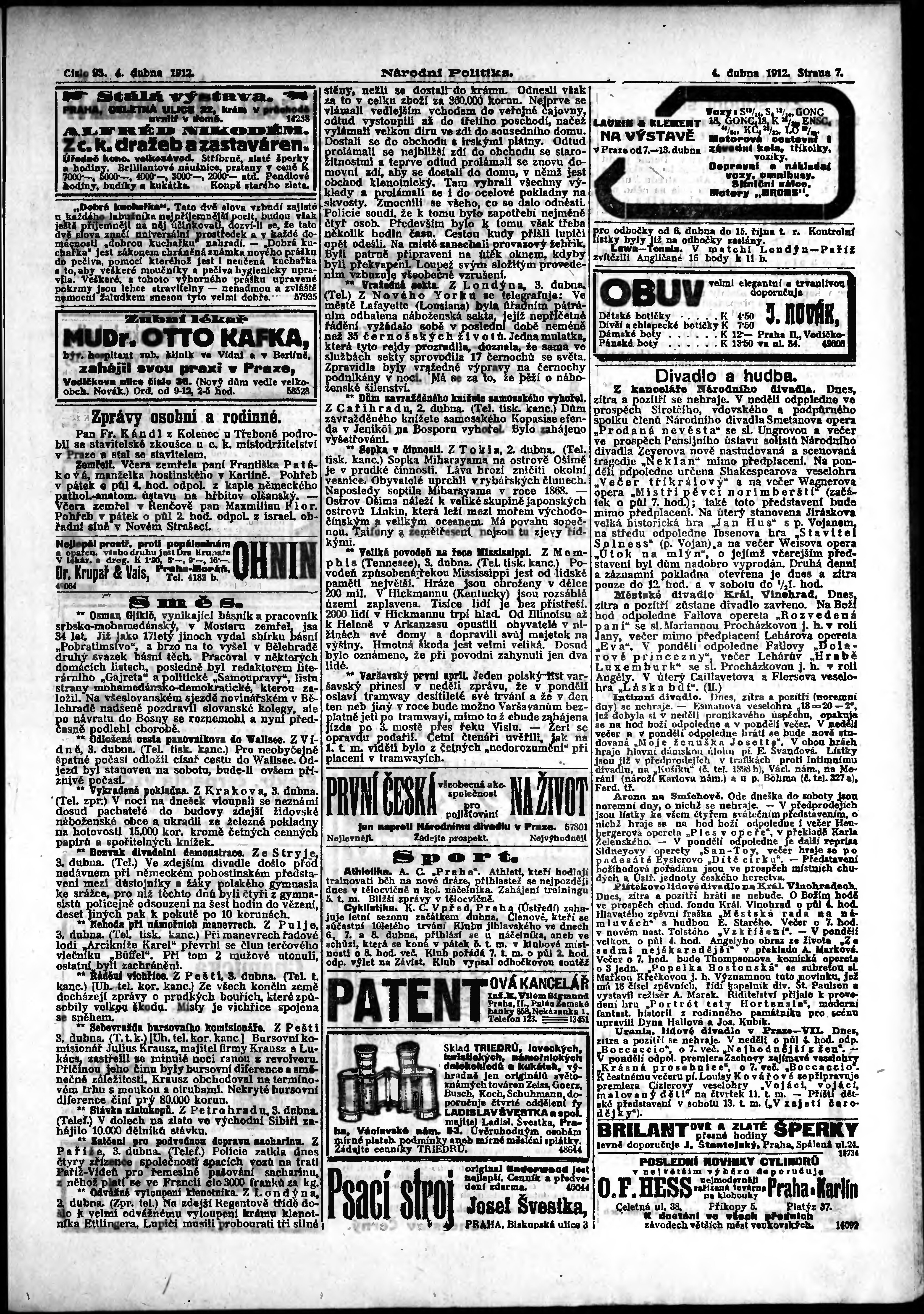 * Datum vydání výtisku: 4.4.1912 Číslo výtisku: 93 Poznámky k výtisku: ranní vydání;