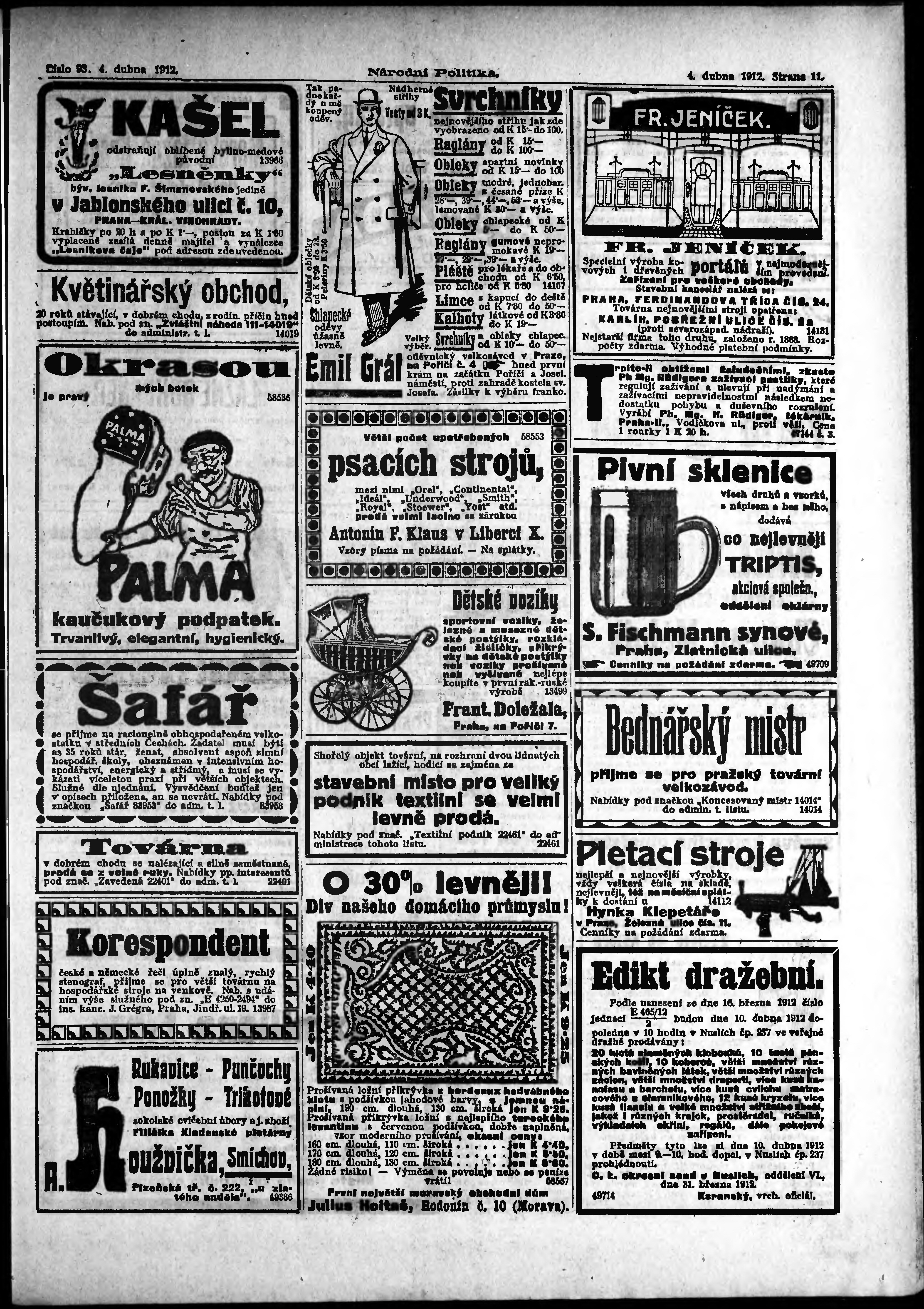 * Datum vydání výtisku: 4.4.1912 Číslo výtisku: 93 Poznámky k výtisku: ranní vydání;