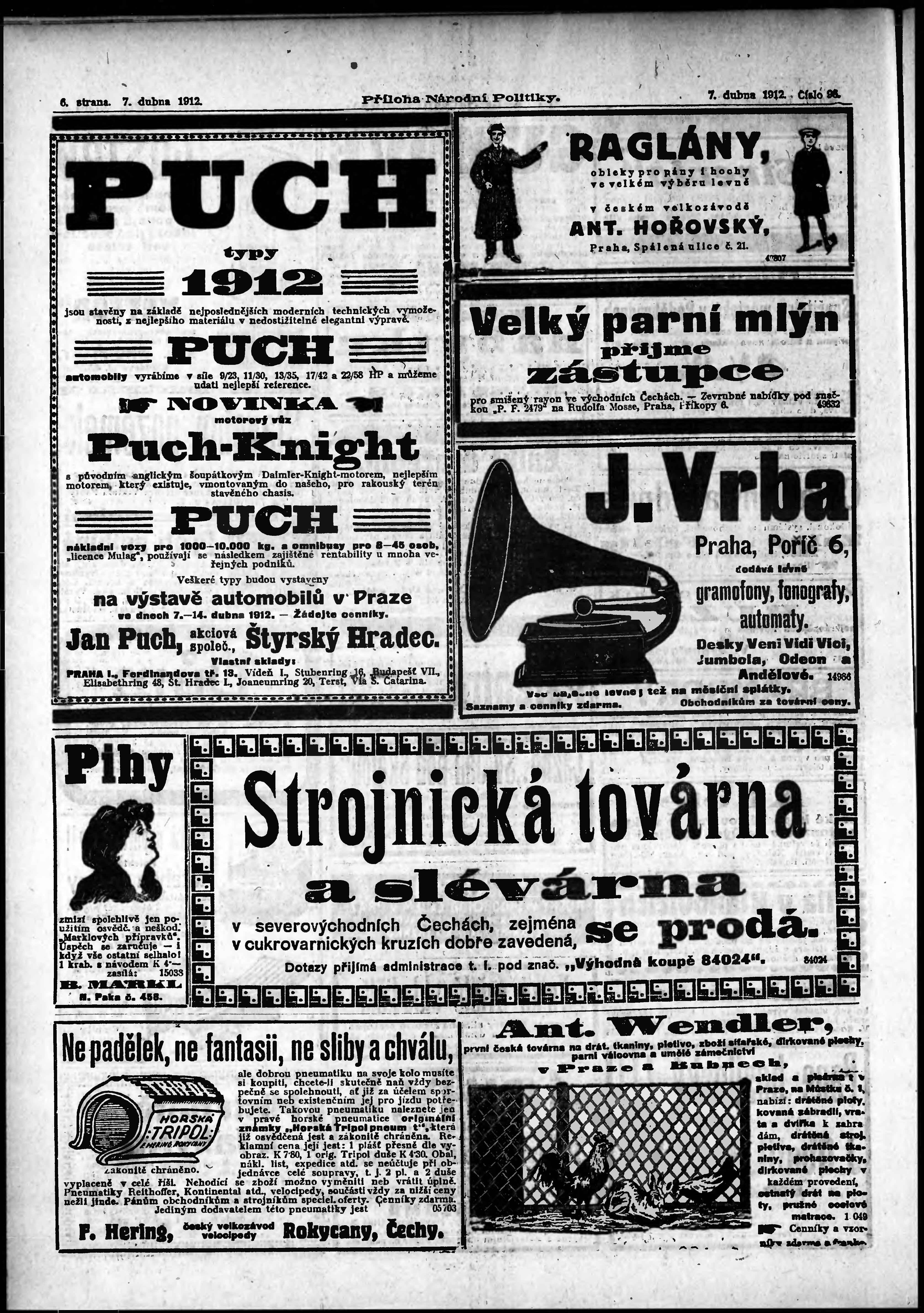 * Datum vydání výtisku: 7.4.1912 Číslo výtisku: 96 Typ výtisku: příloha Poznámky k výtisku: 4. příloha;