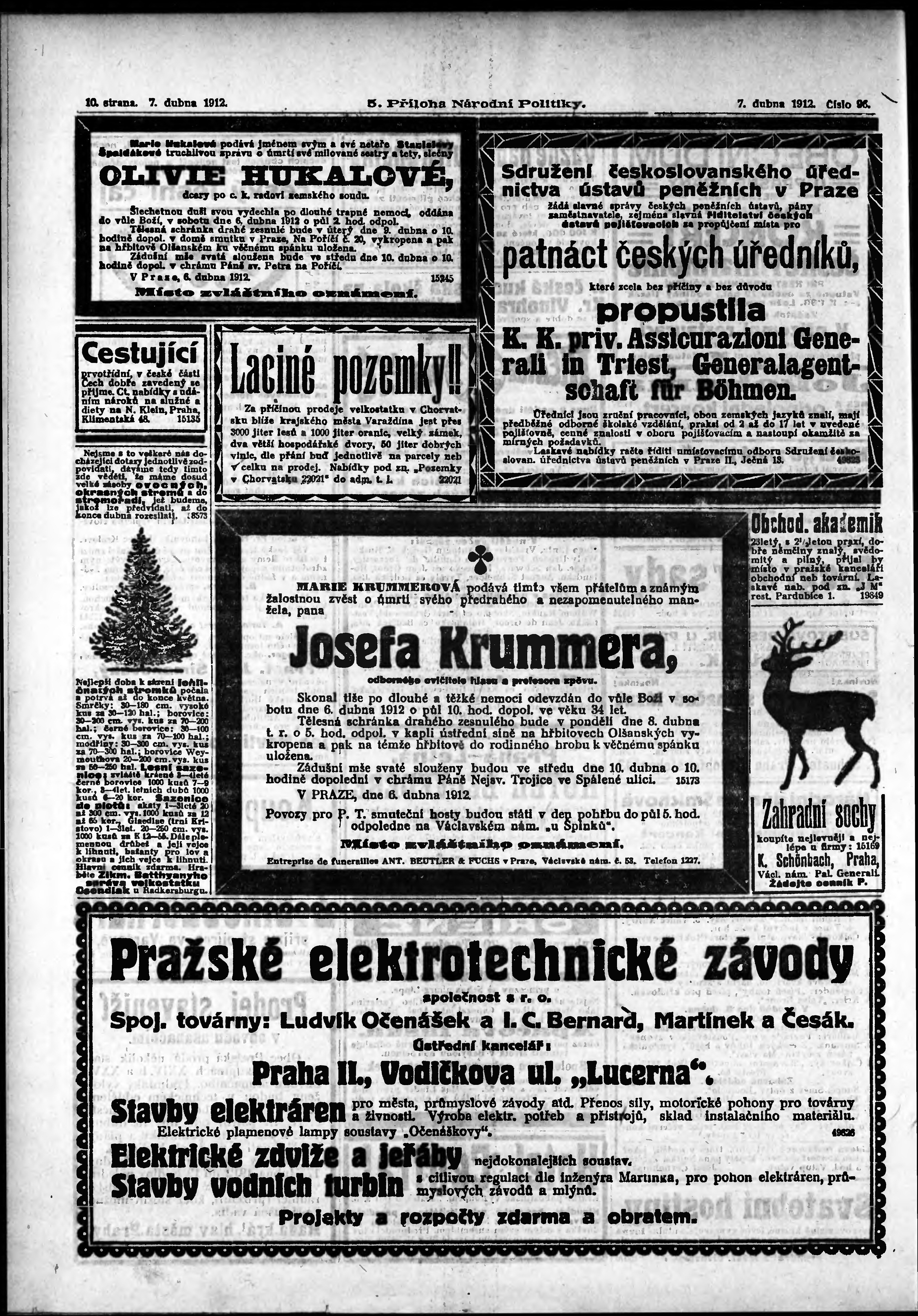 * Datum vydání výtisku: 7.4.1912 Číslo výtisku: 96 Typ výtisku: příloha Poznámky k výtisku: 5. příloha; obsahuje č. 14 Herold českoslovanského peněžnictví;