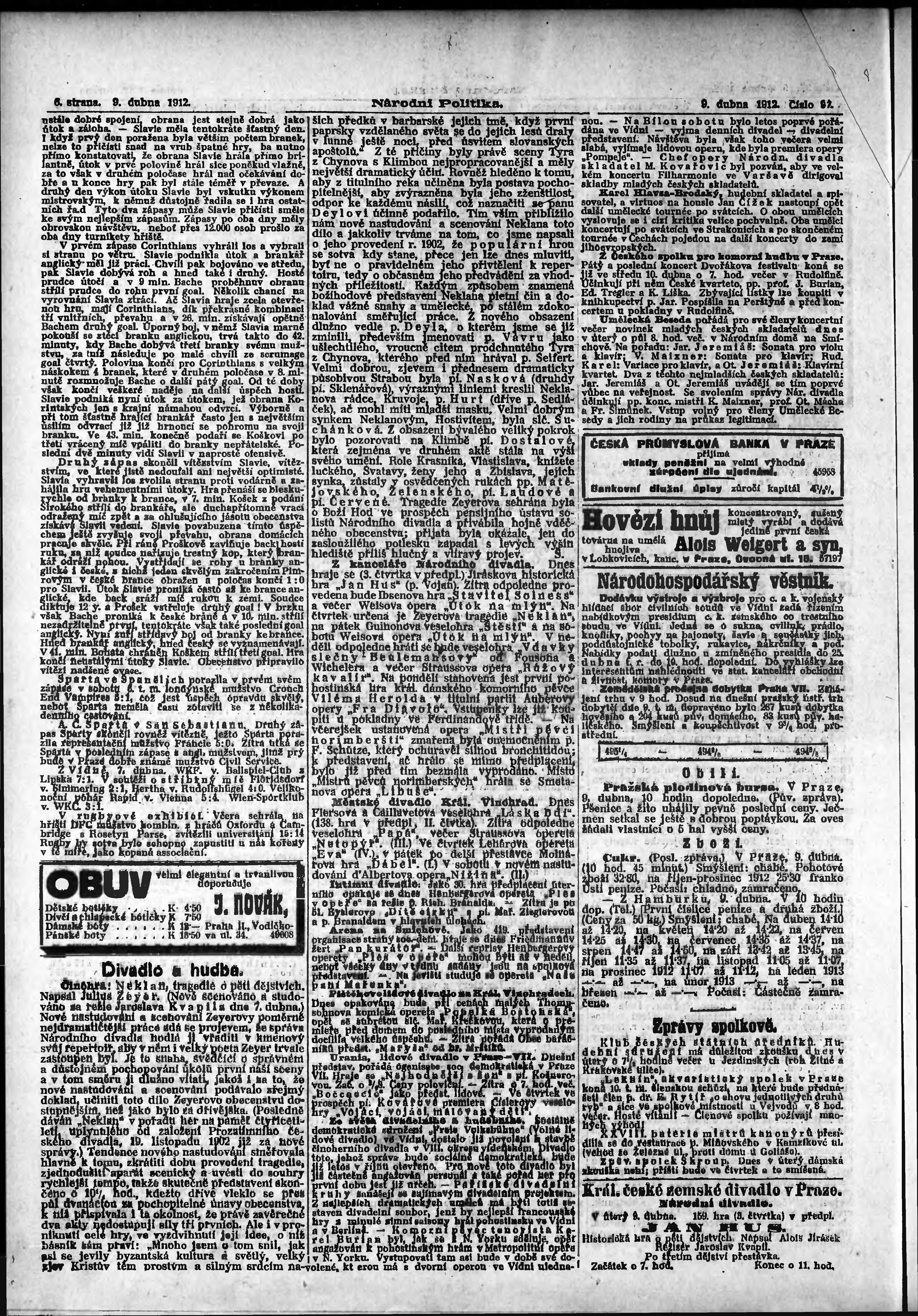 * Datum vydání výtisku: 9.4.1912 Číslo výtisku: 97 Poznámky k výtisku: ranní vydání;