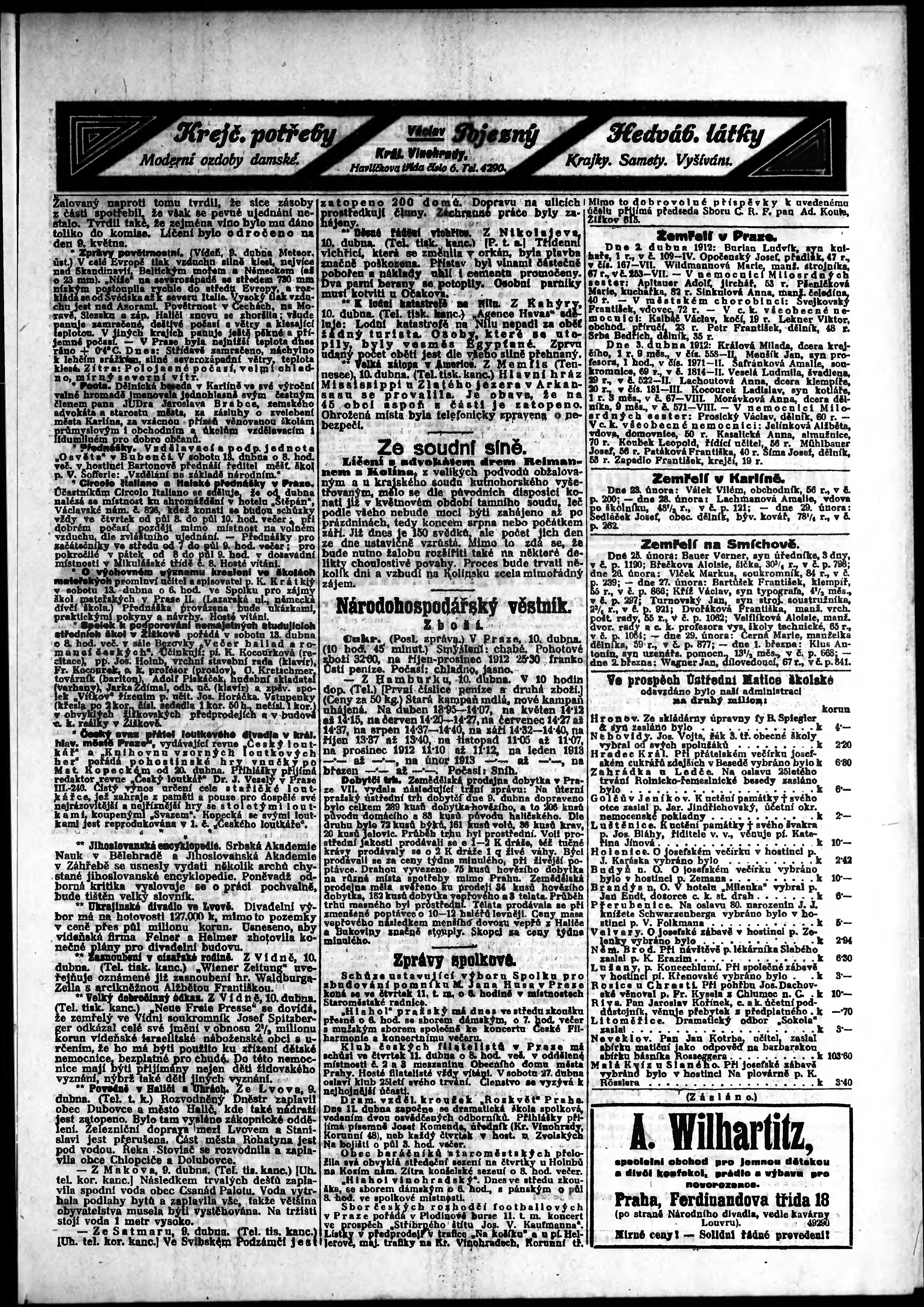 * Datum vydání výtisku: 10.4.1912 Číslo výtisku: 98 Poznámky k výtisku: odpolední vydání;