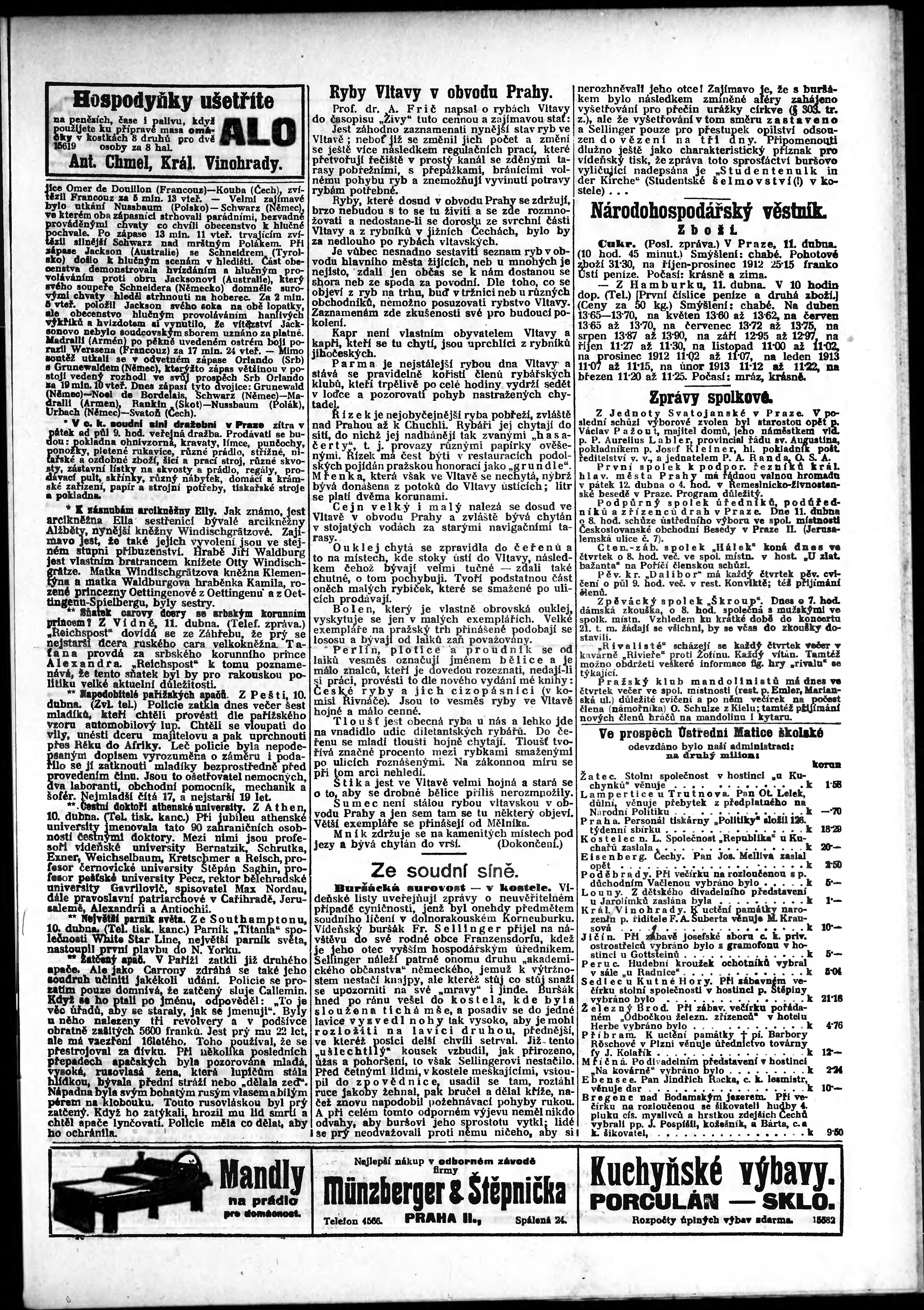 * Datum vydání výtisku: 11.4.1912 Číslo výtisku: 99 Poznámky k výtisku: odpolední vydání;