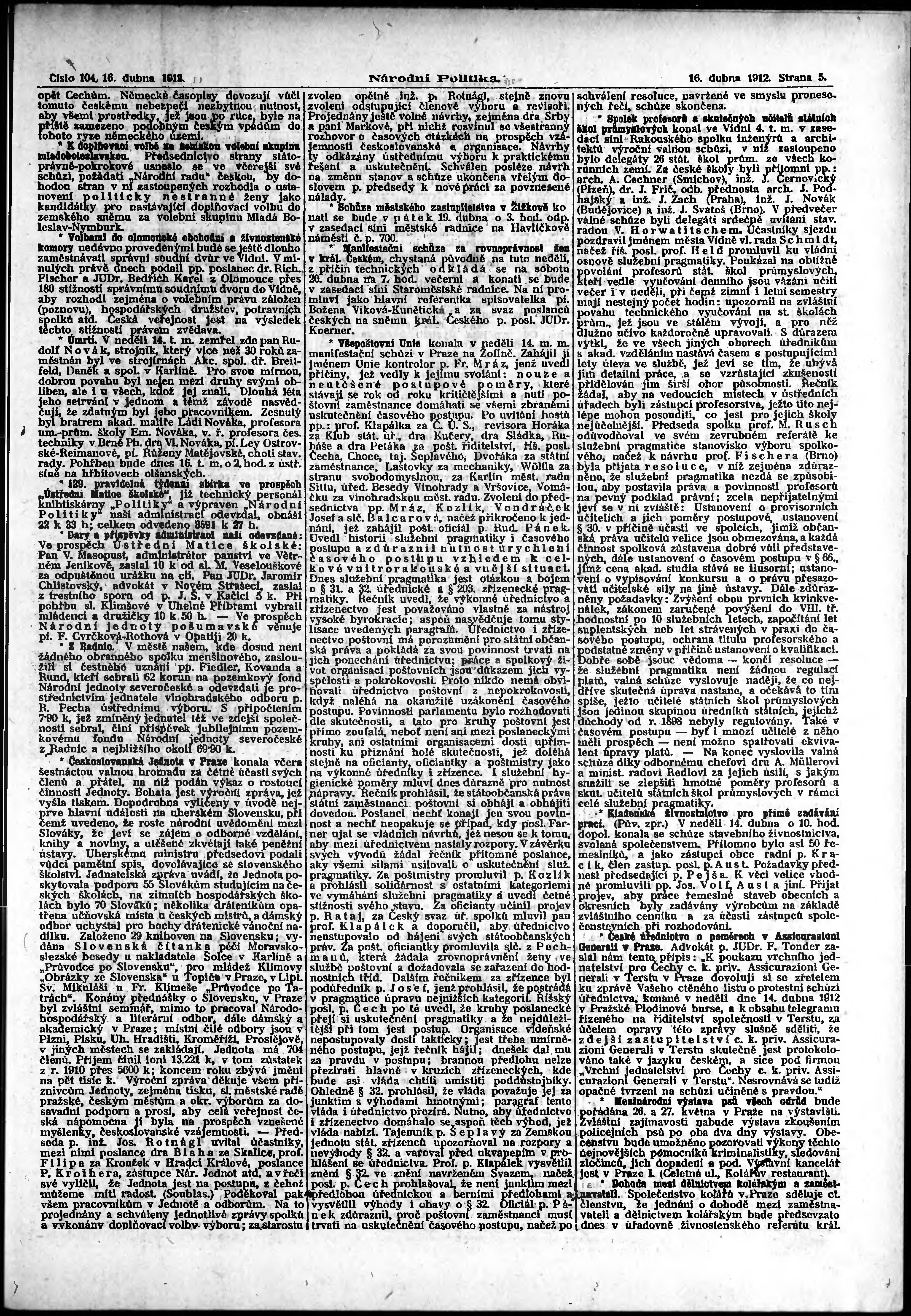 * Datum vydání výtisku: 16.4.1912 Číslo výtisku: 104 Poznámky k výtisku: ranní vydání;
