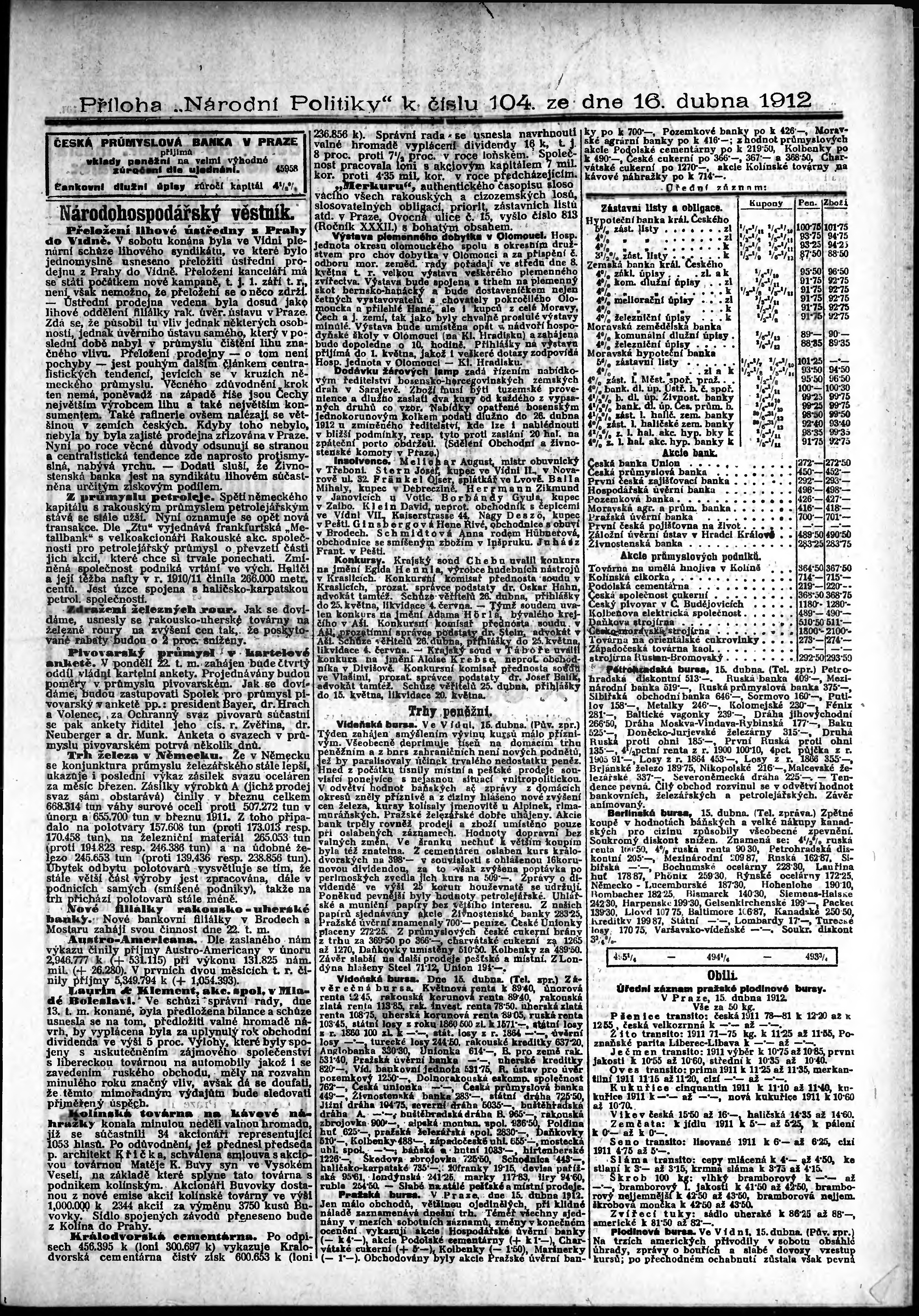 * Datum vydání výtisku: 16.4.1912 Číslo výtisku: 104 Typ výtisku: příloha Poznámky k výtisku: s. 9 - 10 není k dispozici;