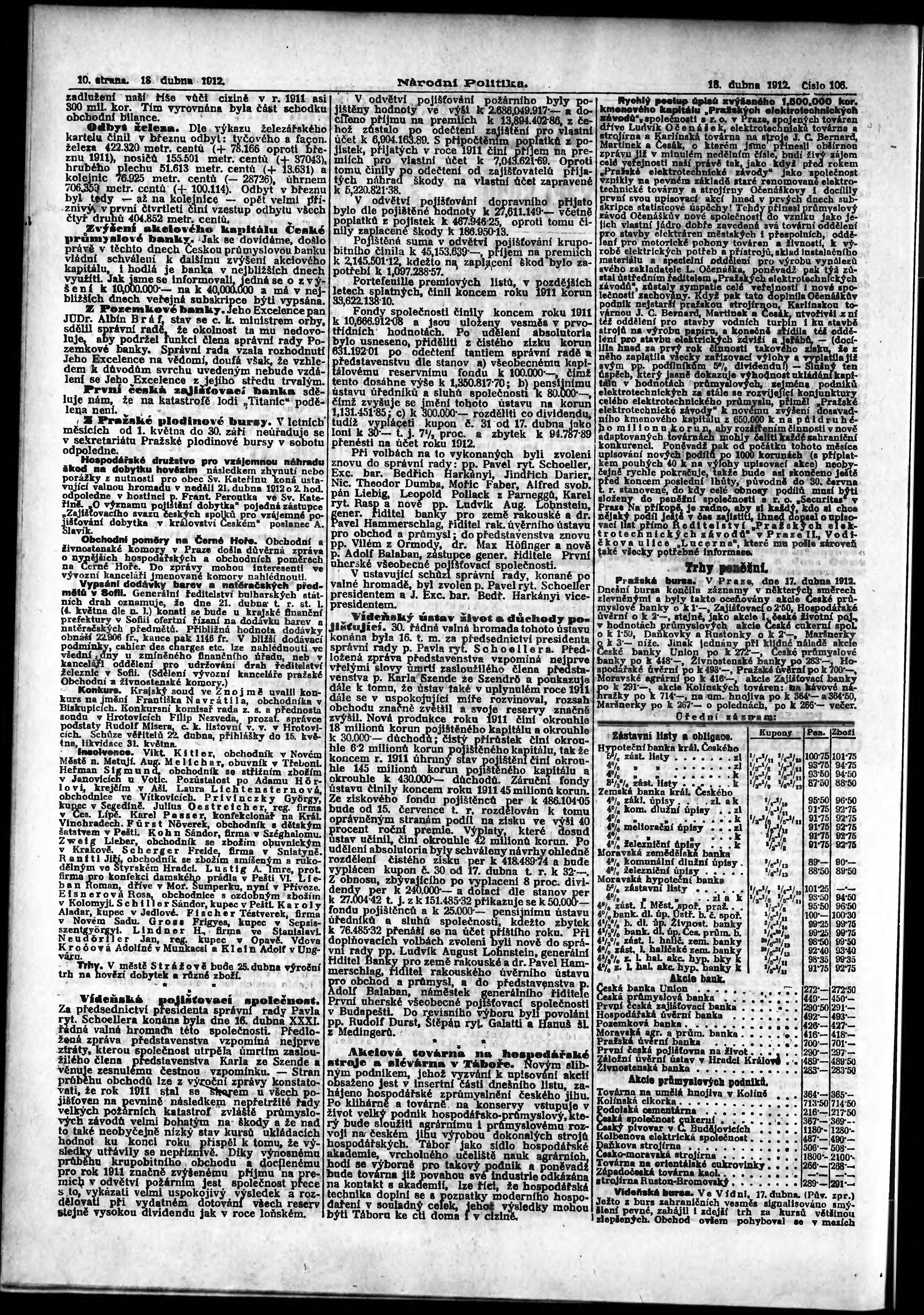 * Datum vydání výtisku: 18.4.1912 Číslo výtisku: 106 Poznámky k výtisku: ranní vydání;