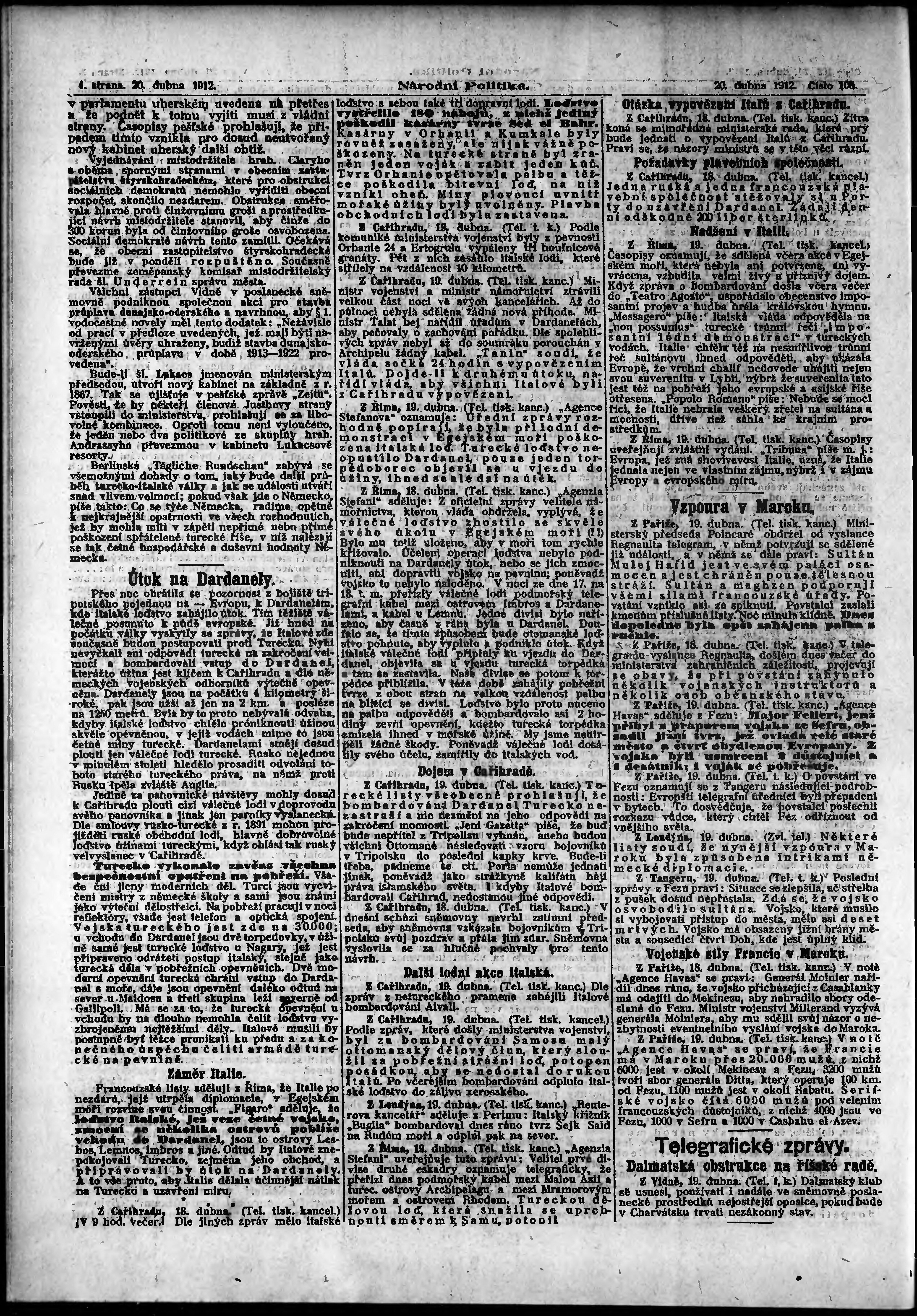 * Datum vydání výtisku: 20.4.1912 Číslo výtisku: 108 Poznámky k výtisku: ranní vydání;