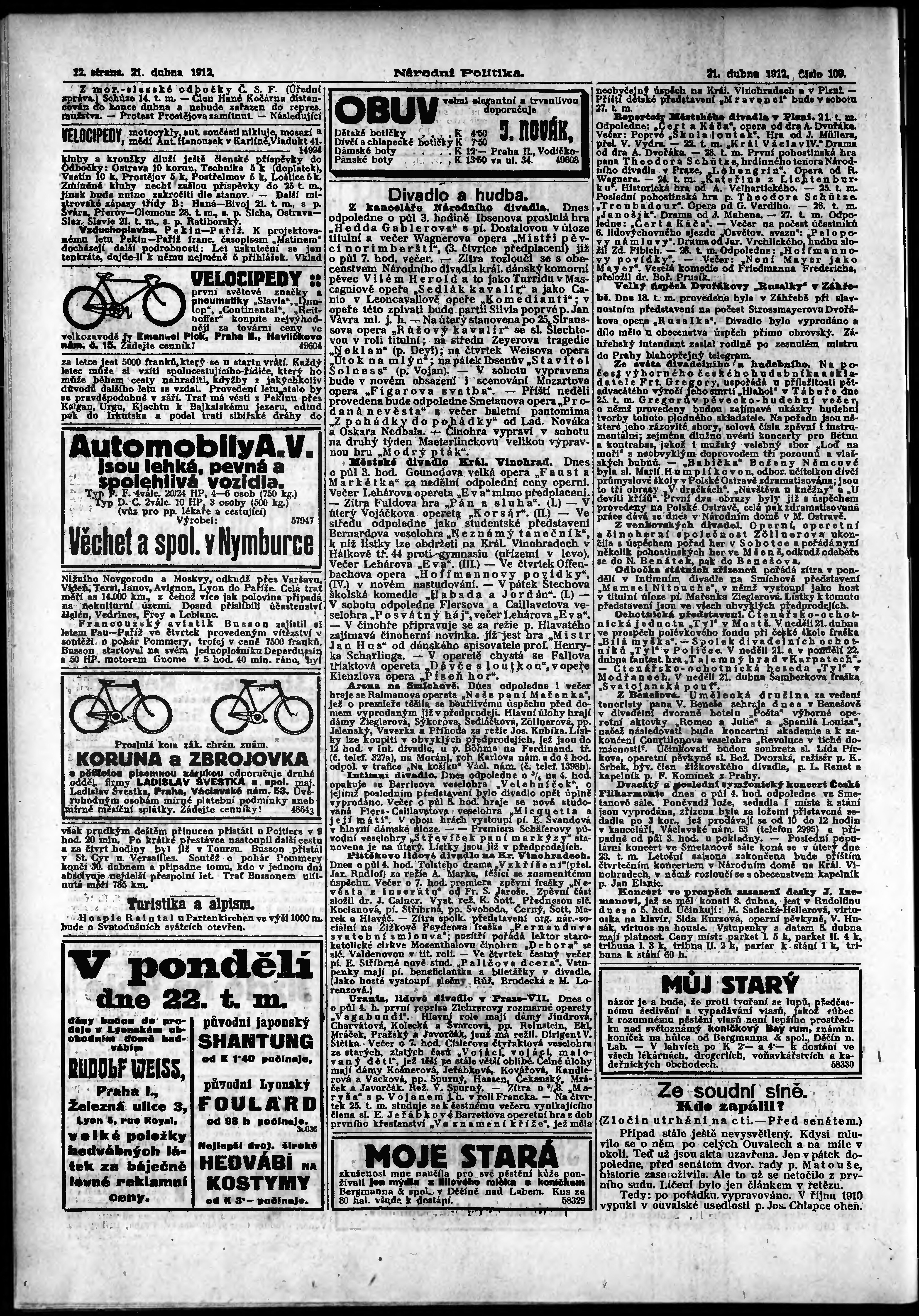 * Datum vydání výtisku: 21.4.1912 Číslo výtisku: 109 Poznámky k výtisku: ranní vydání;
