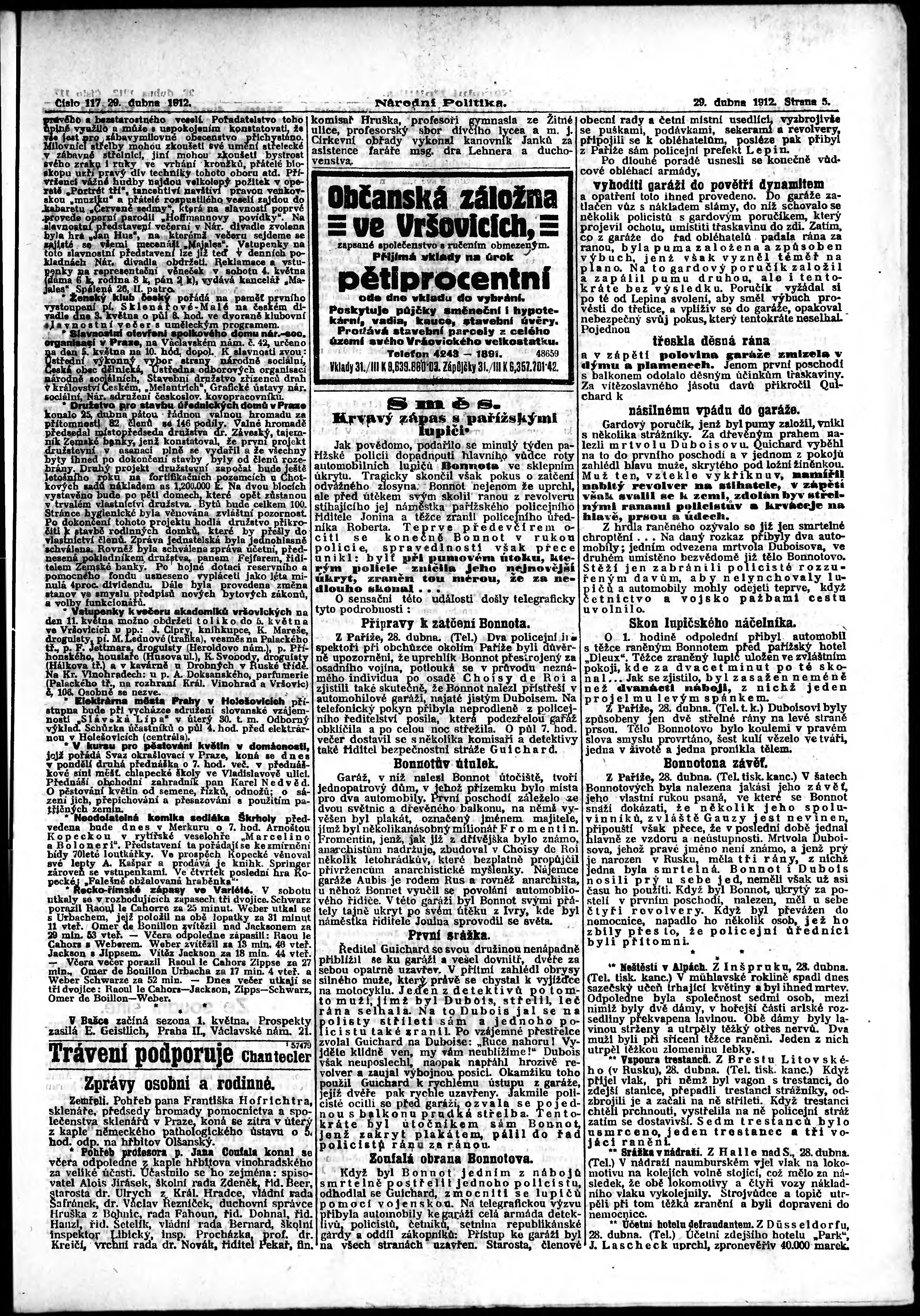 * Datum vydání výtisku: 29.4.1912 Číslo výtisku: 117 Poznámky k výtisku: ranní vydání;