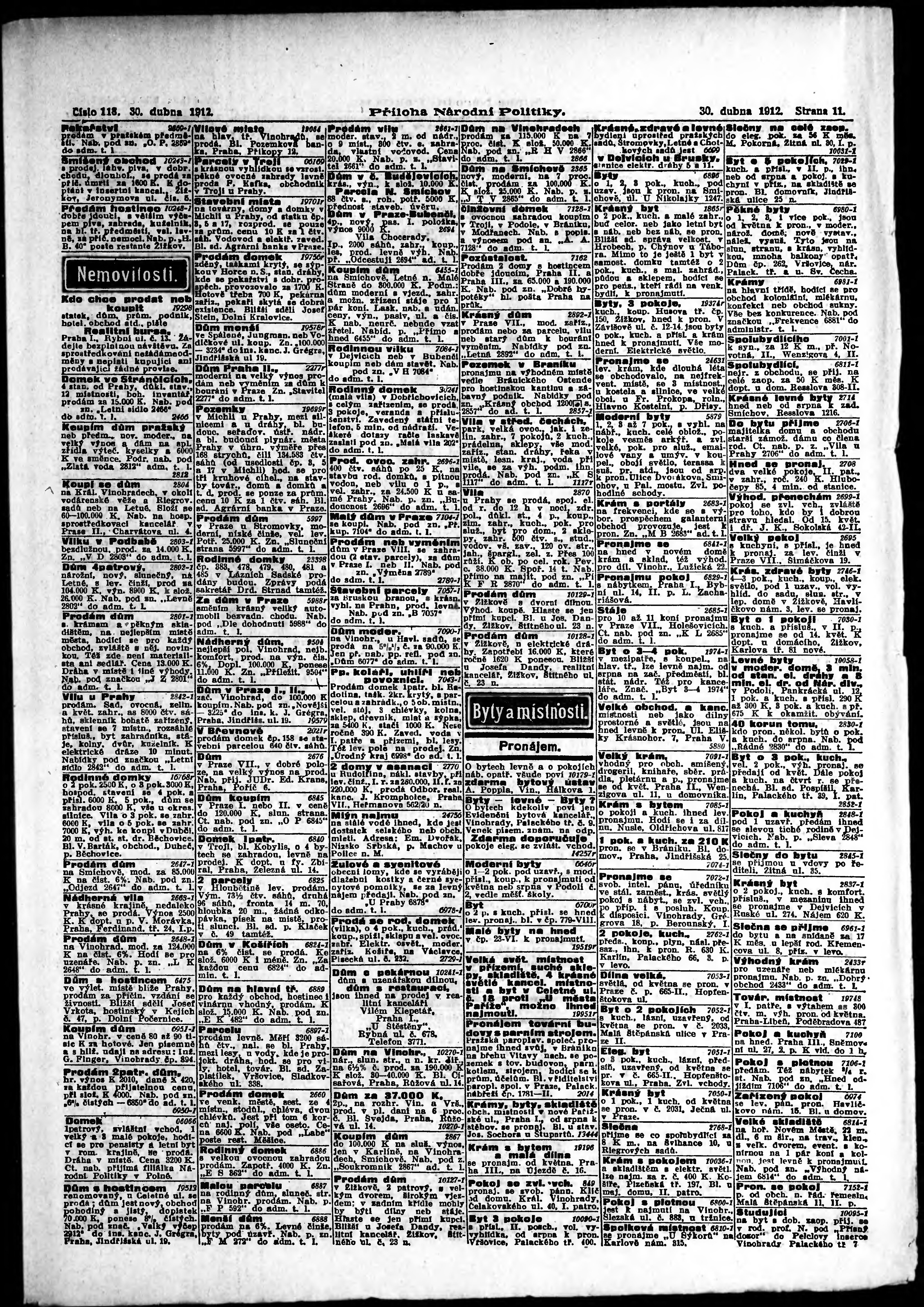* Datum vydání výtisku: 30.4.1912 Číslo výtisku: 118 Typ výtisku: příloha