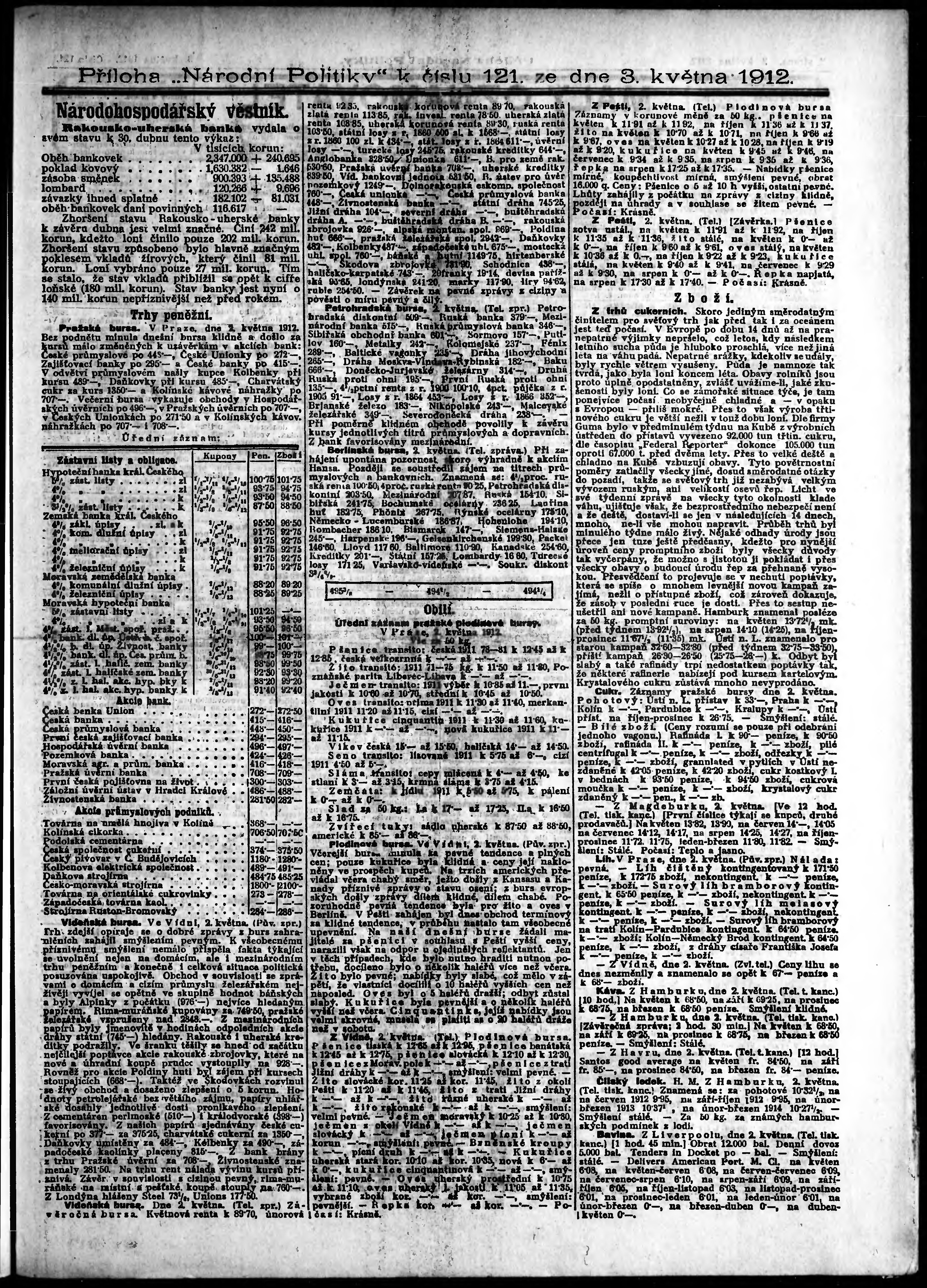 * Datum vydání výtisku: 3.5.1912 Číslo výtisku: 121 Typ výtisku: příloha Poznámky k výtisku: s. 5 - 6 není k dispozici;