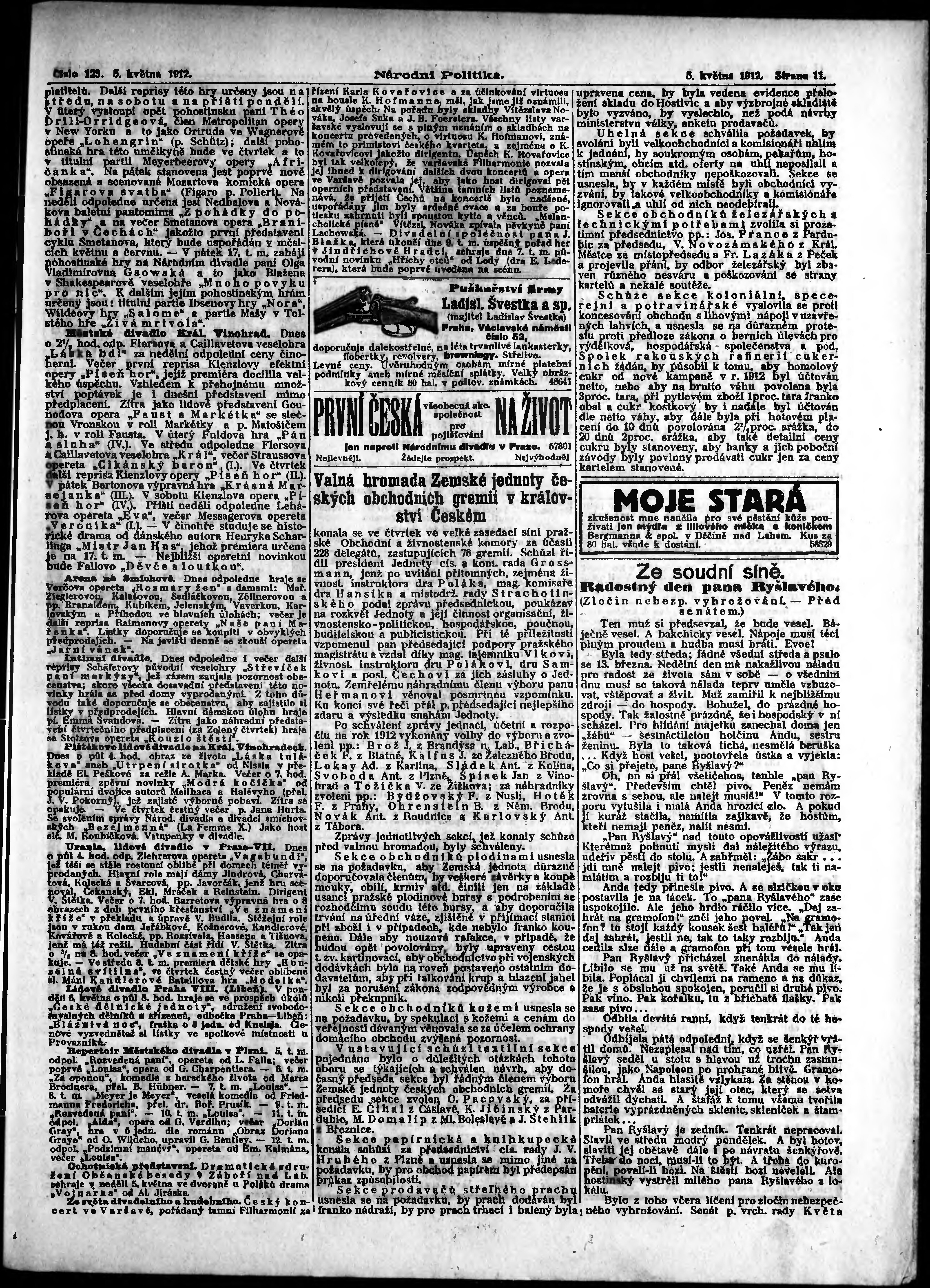 * Datum vydání výtisku: 5.5.1912 Číslo výtisku: 123 Poznámky k výtisku: ranní vydání;