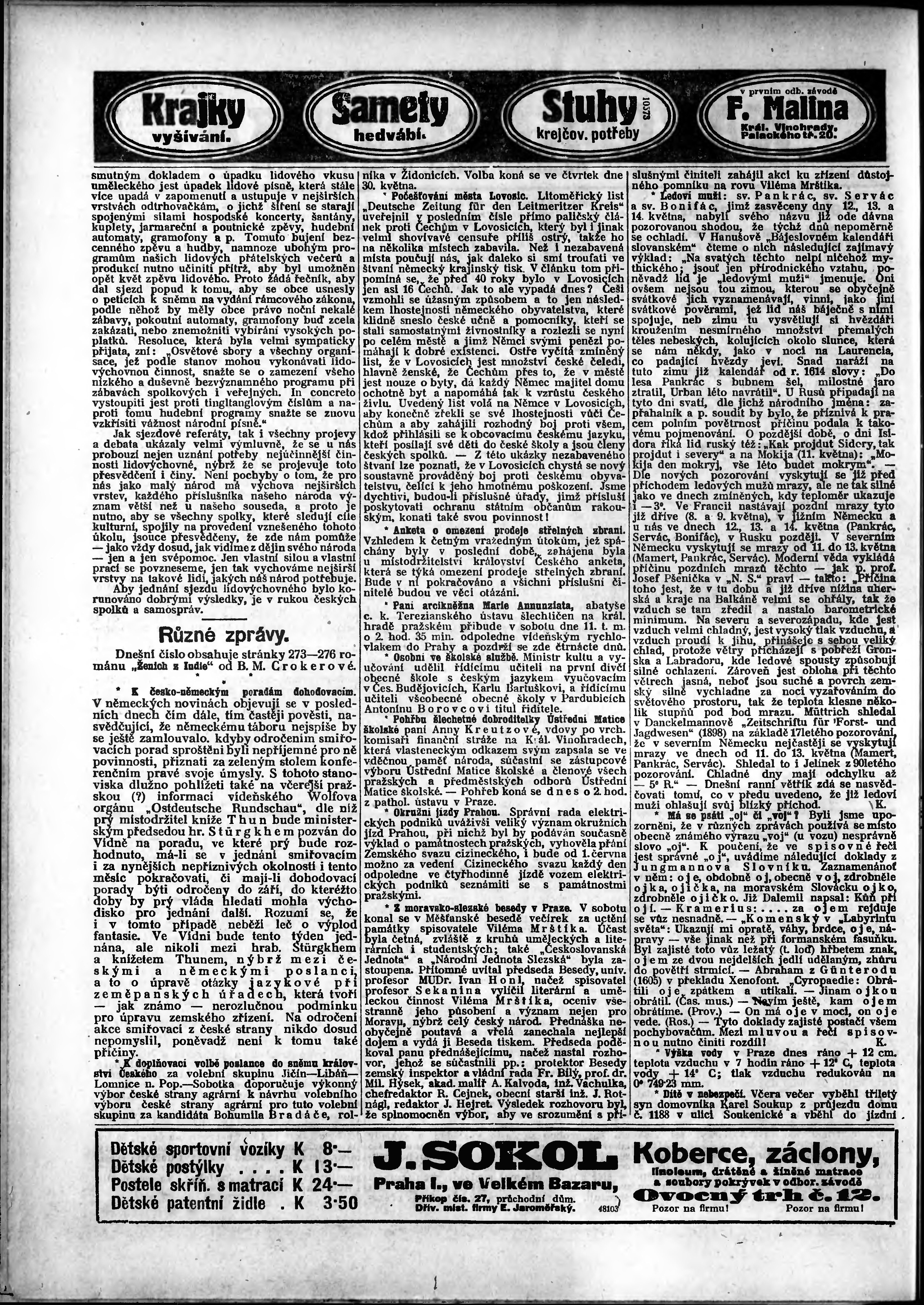 * Datum vydání výtisku: 7.5.1912 Číslo výtisku: 125 Poznámky k výtisku: odpolední vydání;