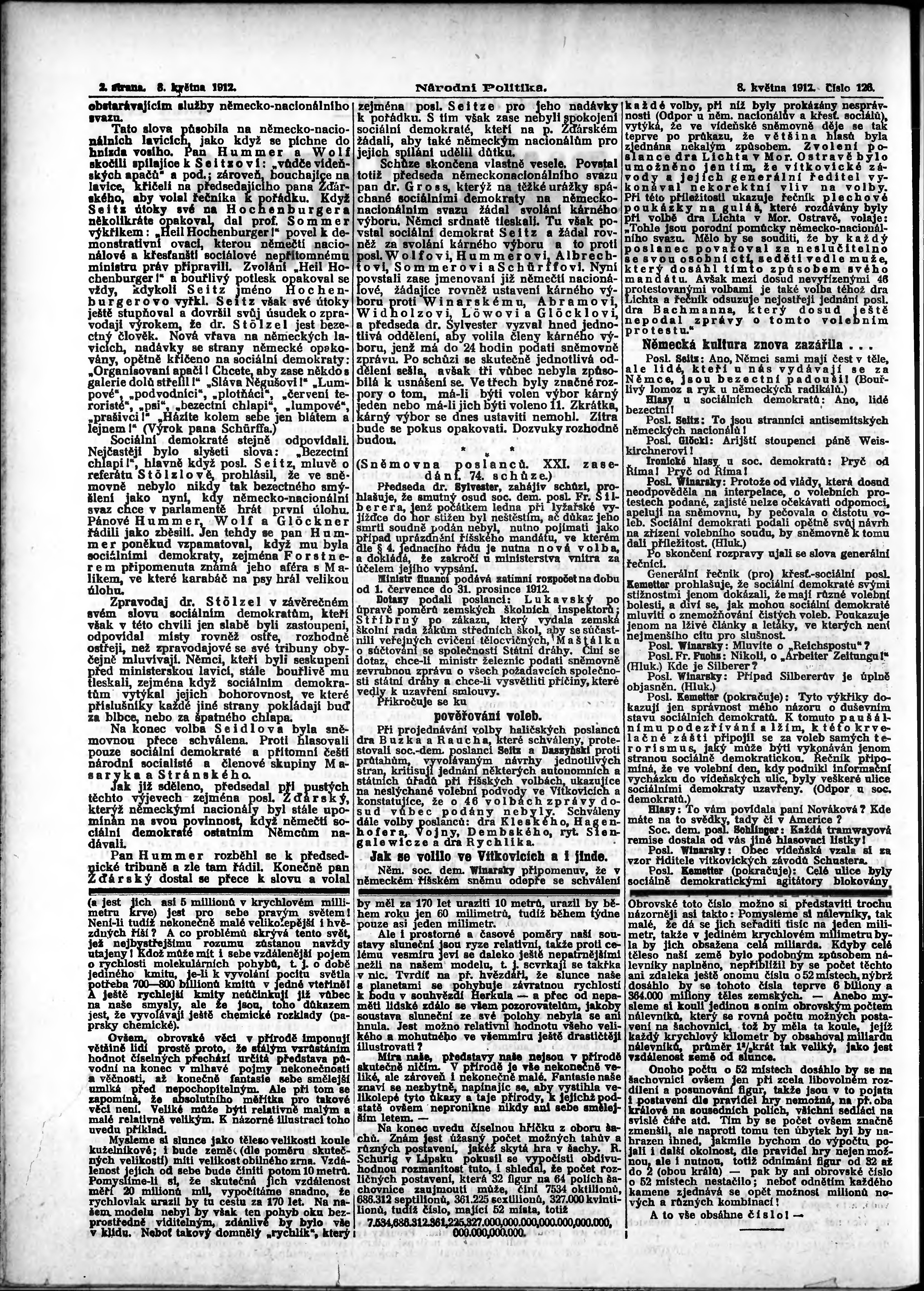 * Datum vydání výtisku: 8.5.1912 Číslo výtisku: 126 Poznámky k výtisku: ranní vydání; s. 15 - 16 není k dispozici;