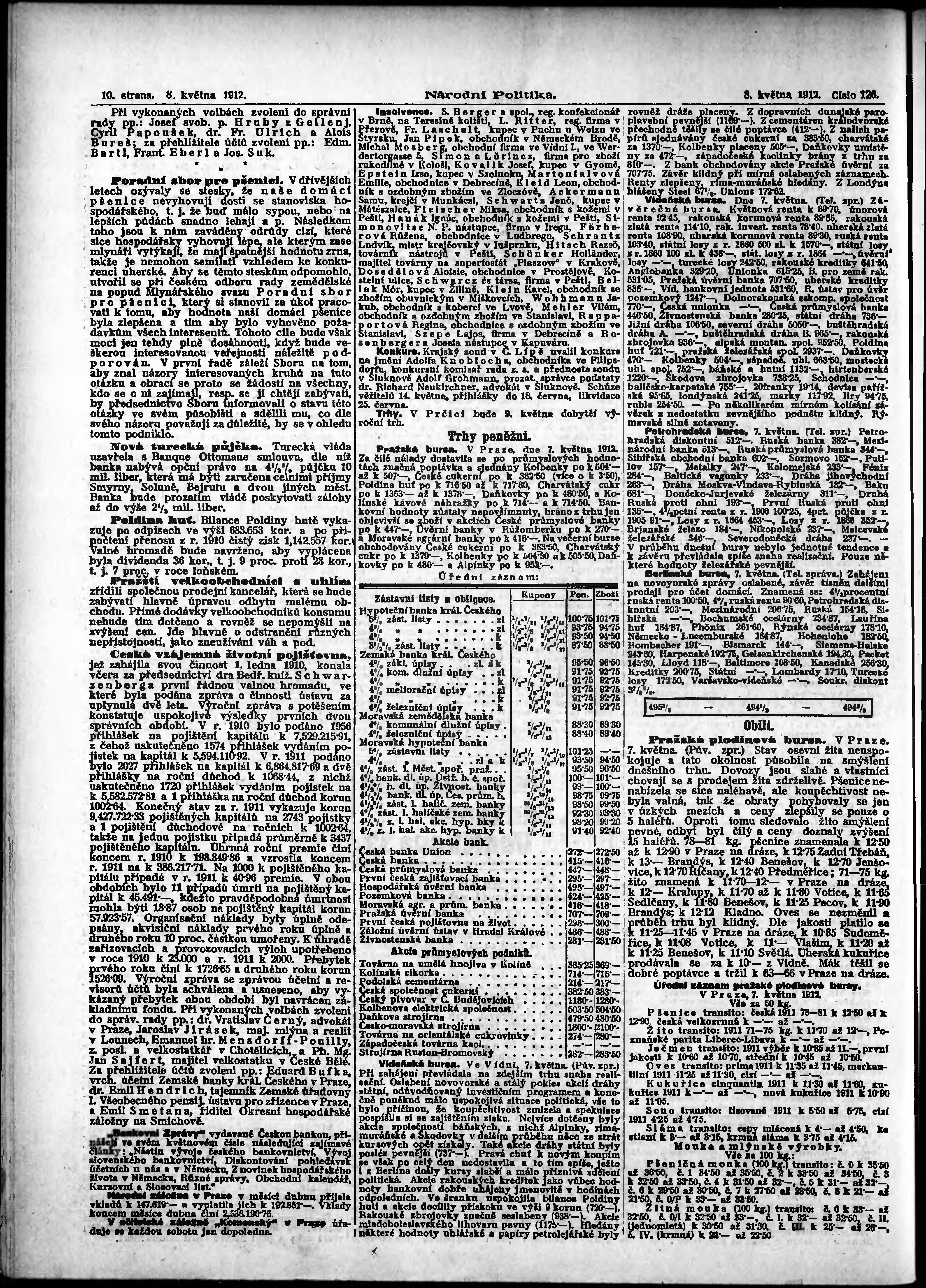 * Datum vydání výtisku: 8.5.1912 Číslo výtisku: 126 Poznámky k výtisku: ranní vydání; s. 15 - 16 není k dispozici;