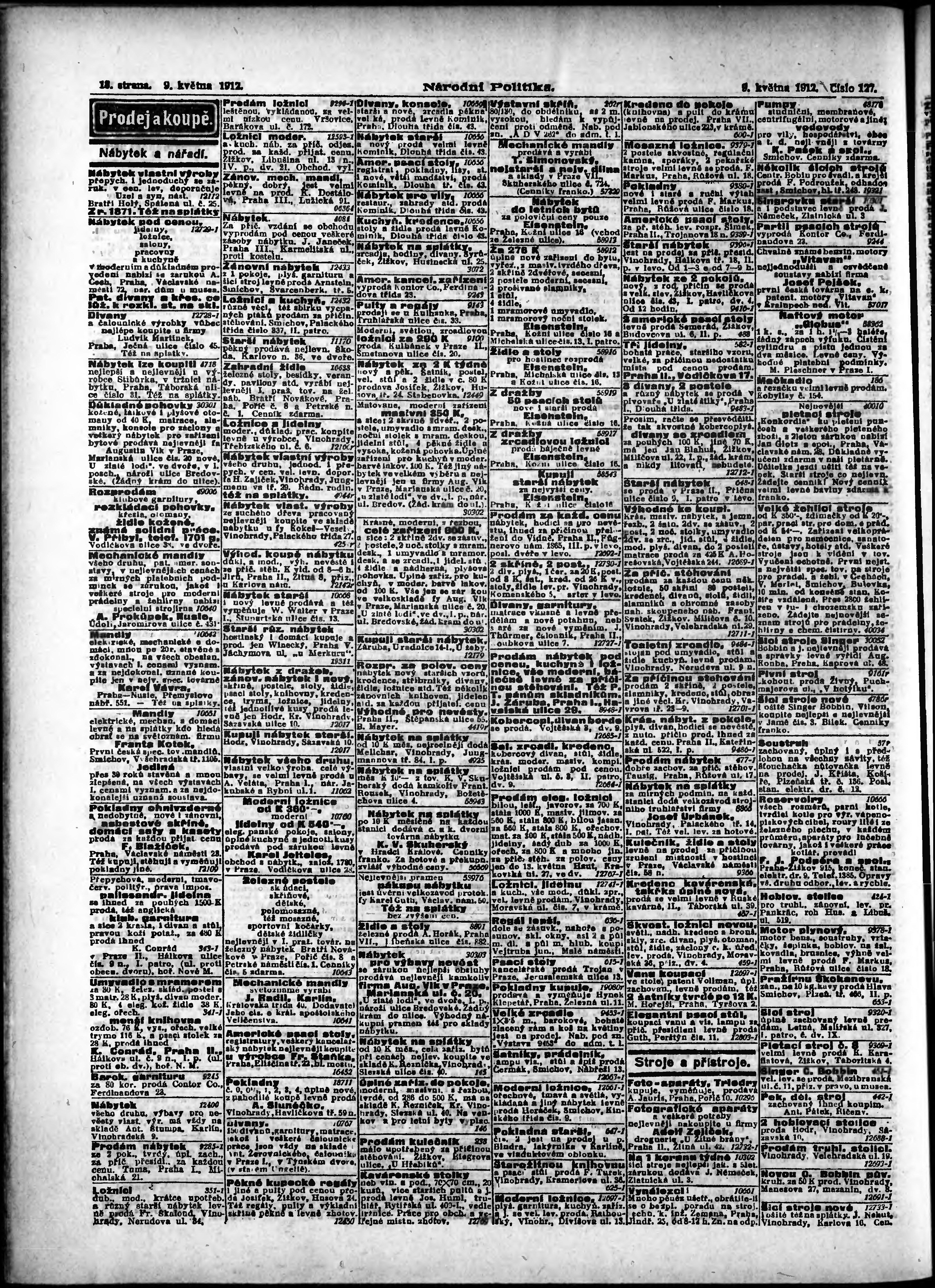 * Datum vydání výtisku: 9.5.1912 Číslo výtisku: 127 Poznámky k výtisku: ranní vydání;