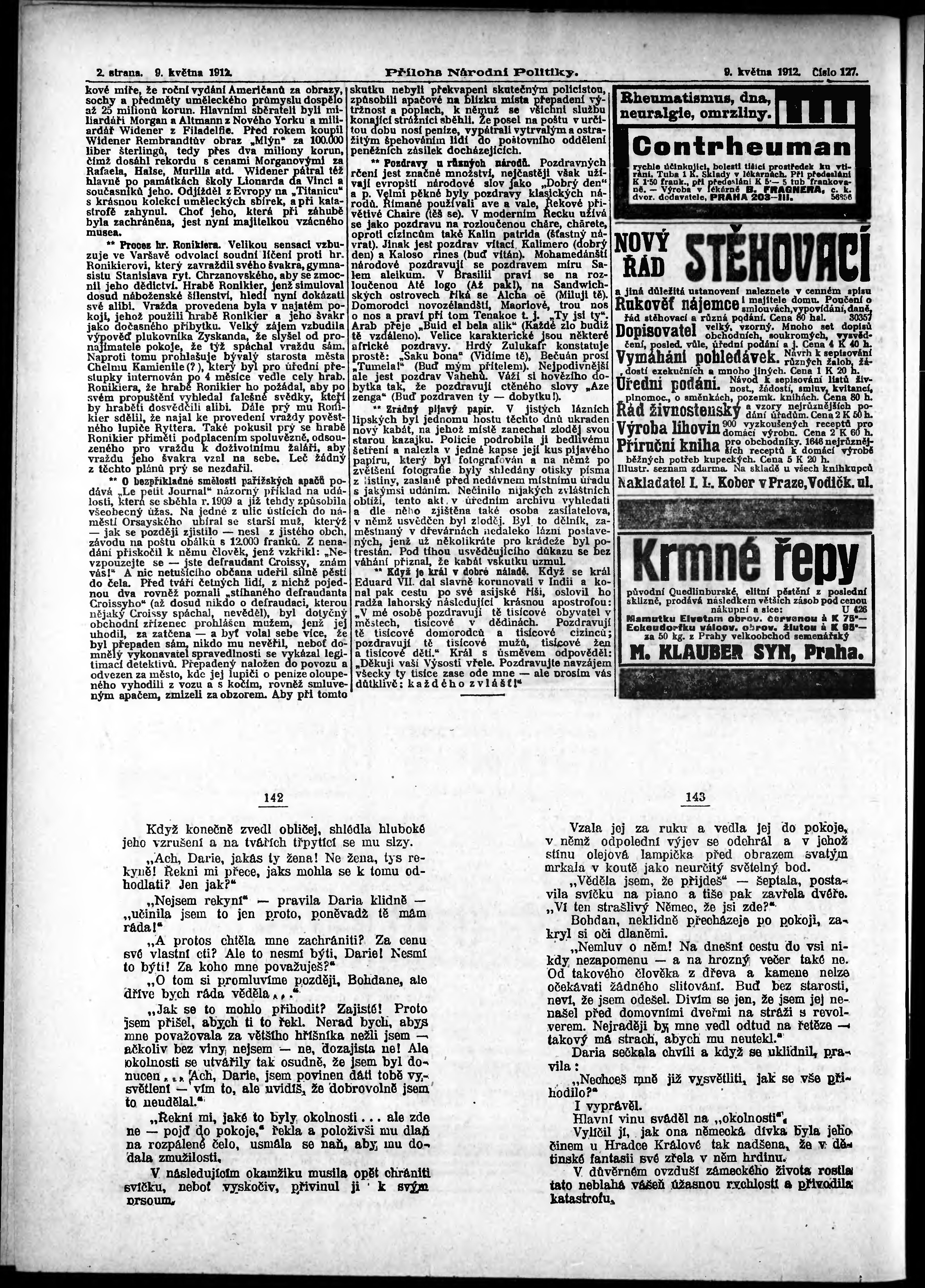 * Datum vydání výtisku: 9.5.1912 Číslo výtisku: 127 Typ výtisku: příloha Poznámky k výtisku: 1. příloha;