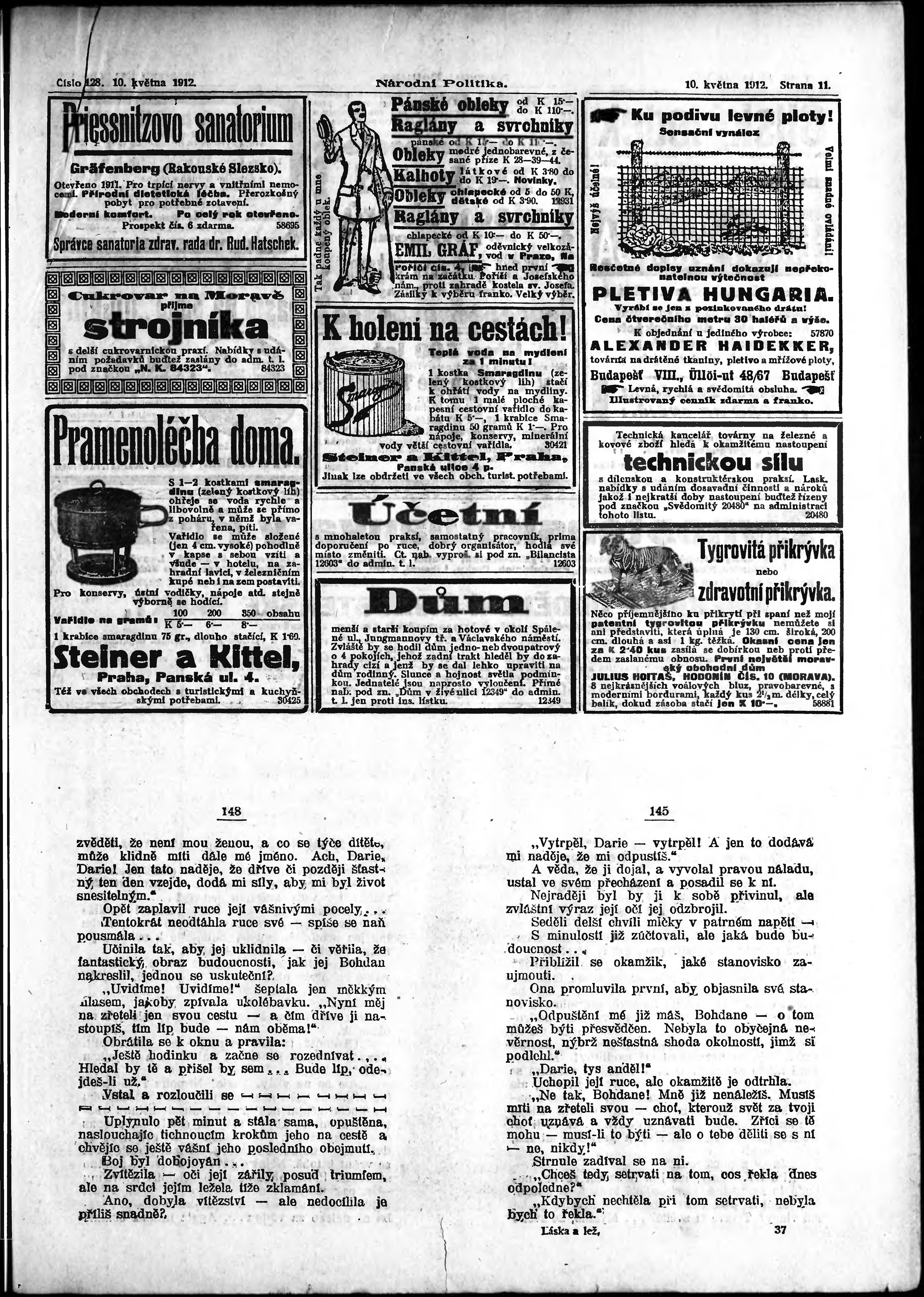 * Datum vydání výtisku: 10.5.1912 Číslo výtisku: 128 Poznámky k výtisku: ranní vydání;