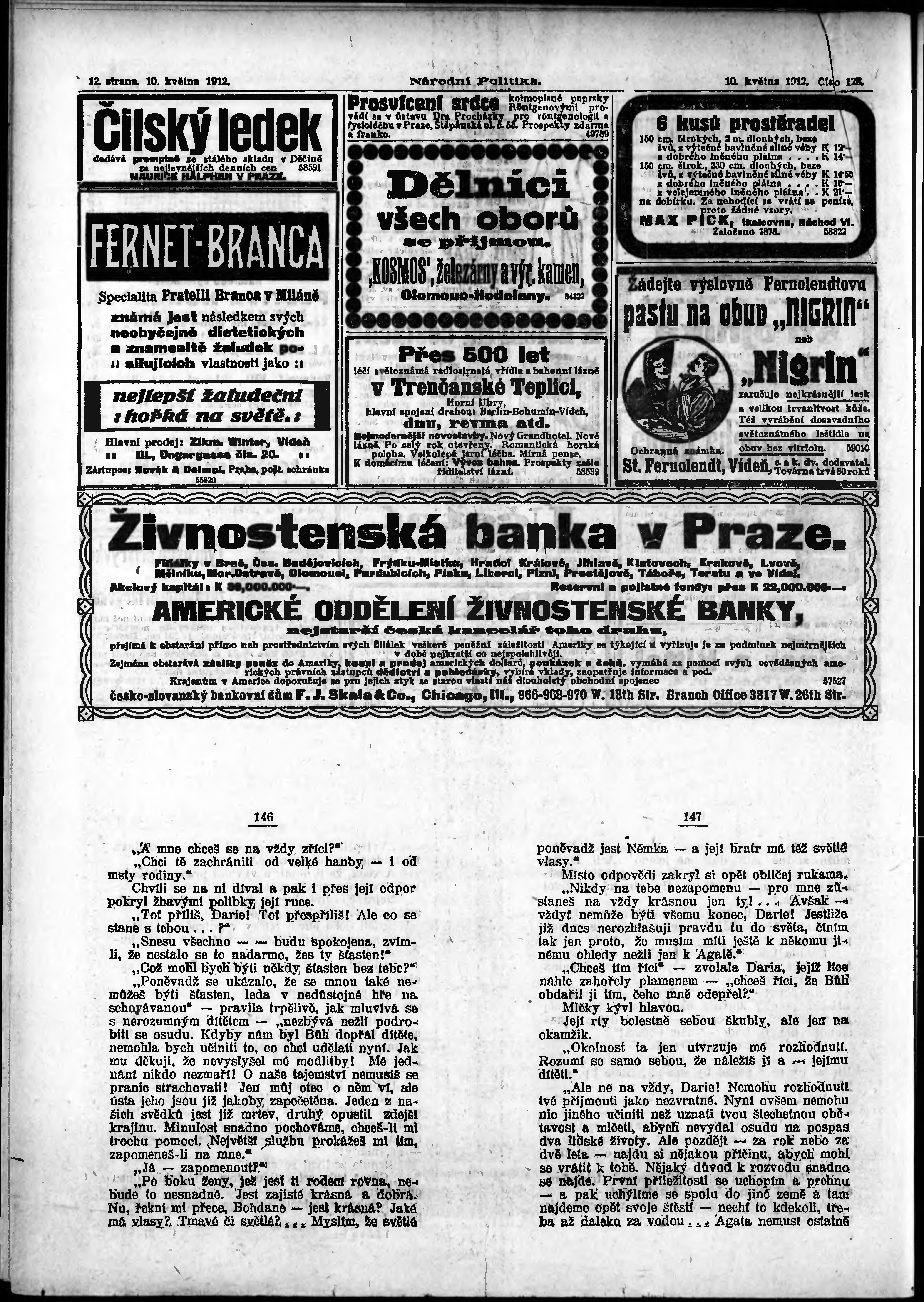 * Datum vydání výtisku: 10.5.1912 Číslo výtisku: 128 Poznámky k výtisku: ranní vydání;