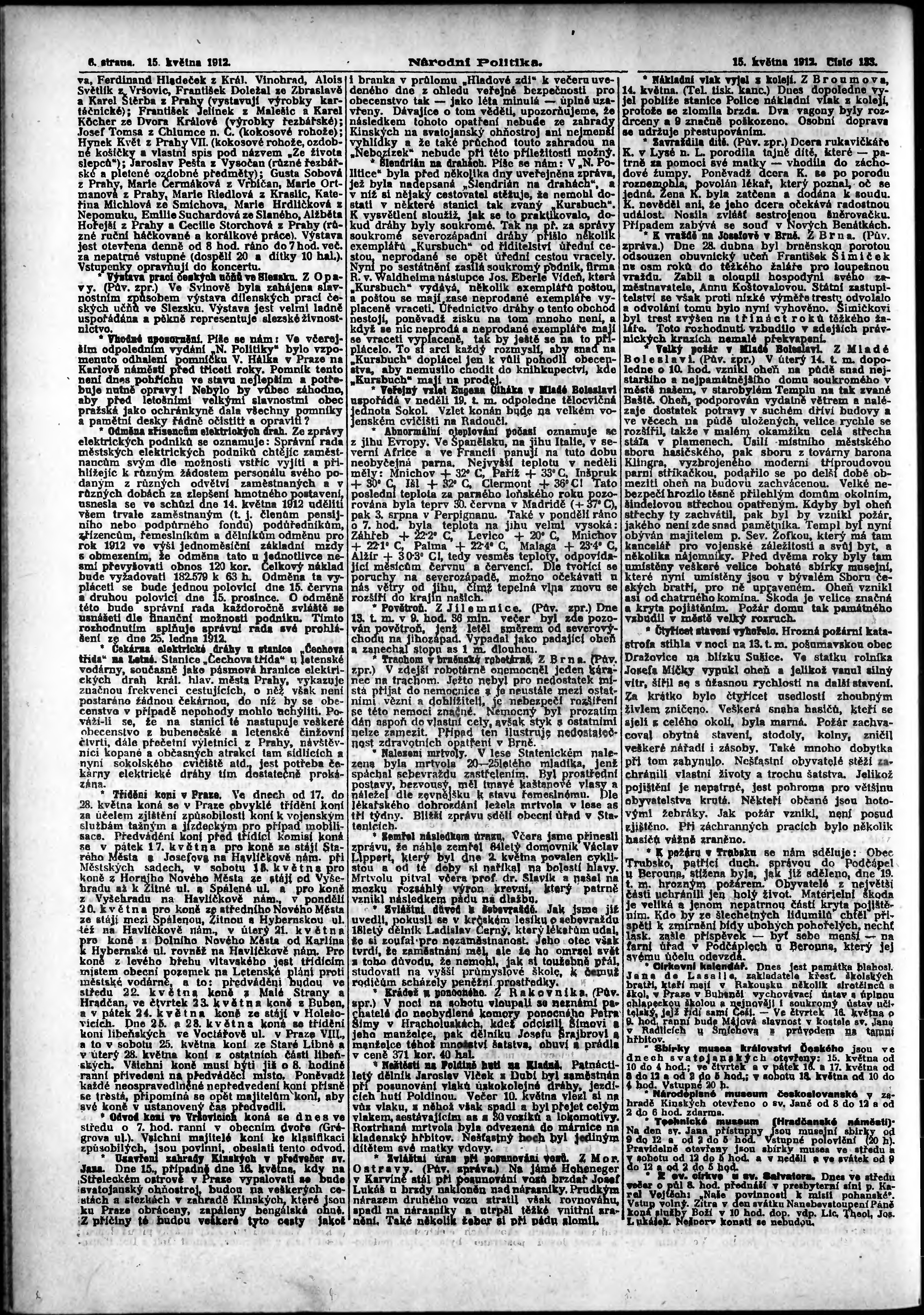 * Datum vydání výtisku: 15.5.1912 Číslo výtisku: 133 Poznámky k výtisku: ranní vydání;
