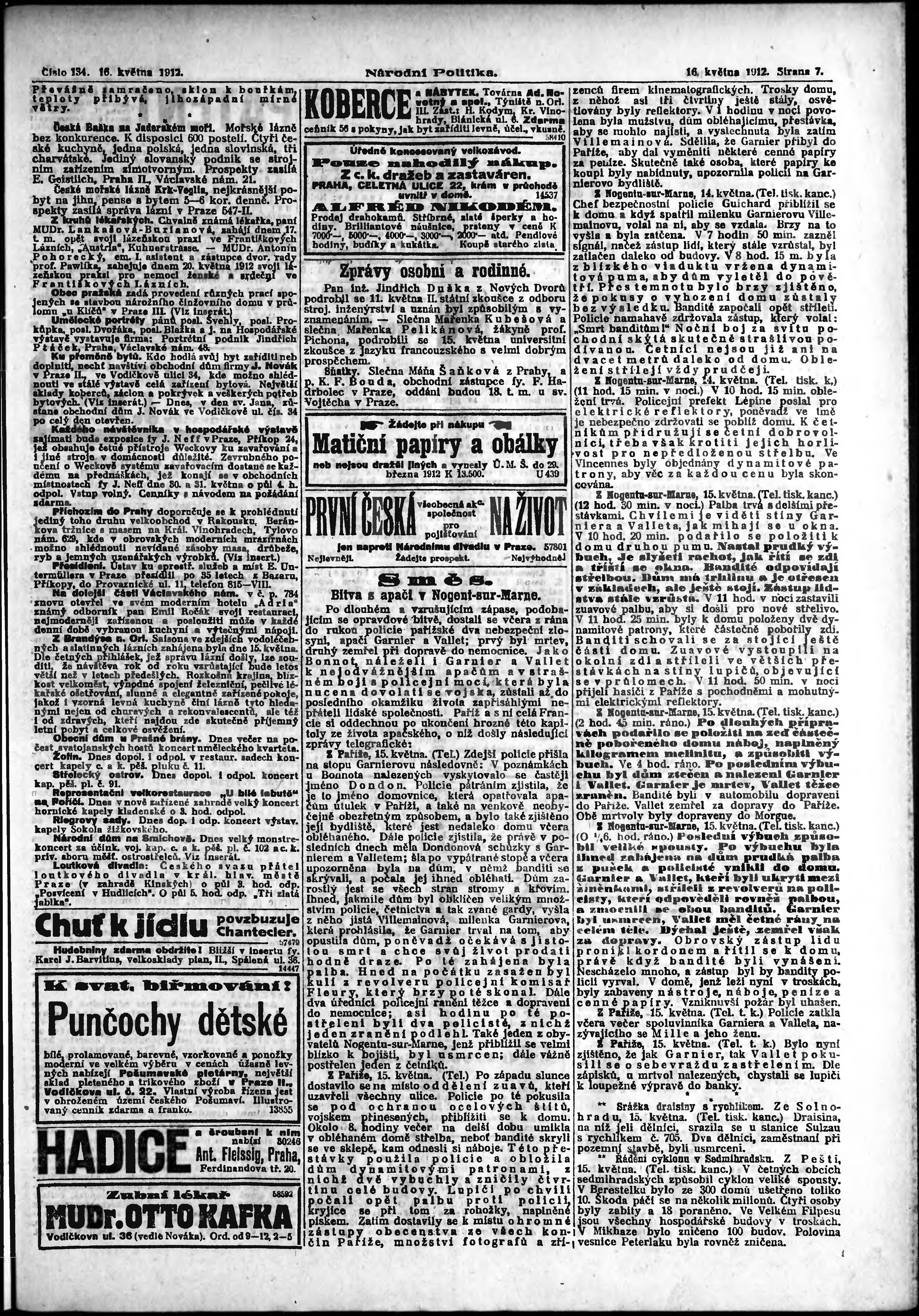* Datum vydání výtisku: 16.5.1912 Číslo výtisku: 134 Poznámky k výtisku: ranní vydání;